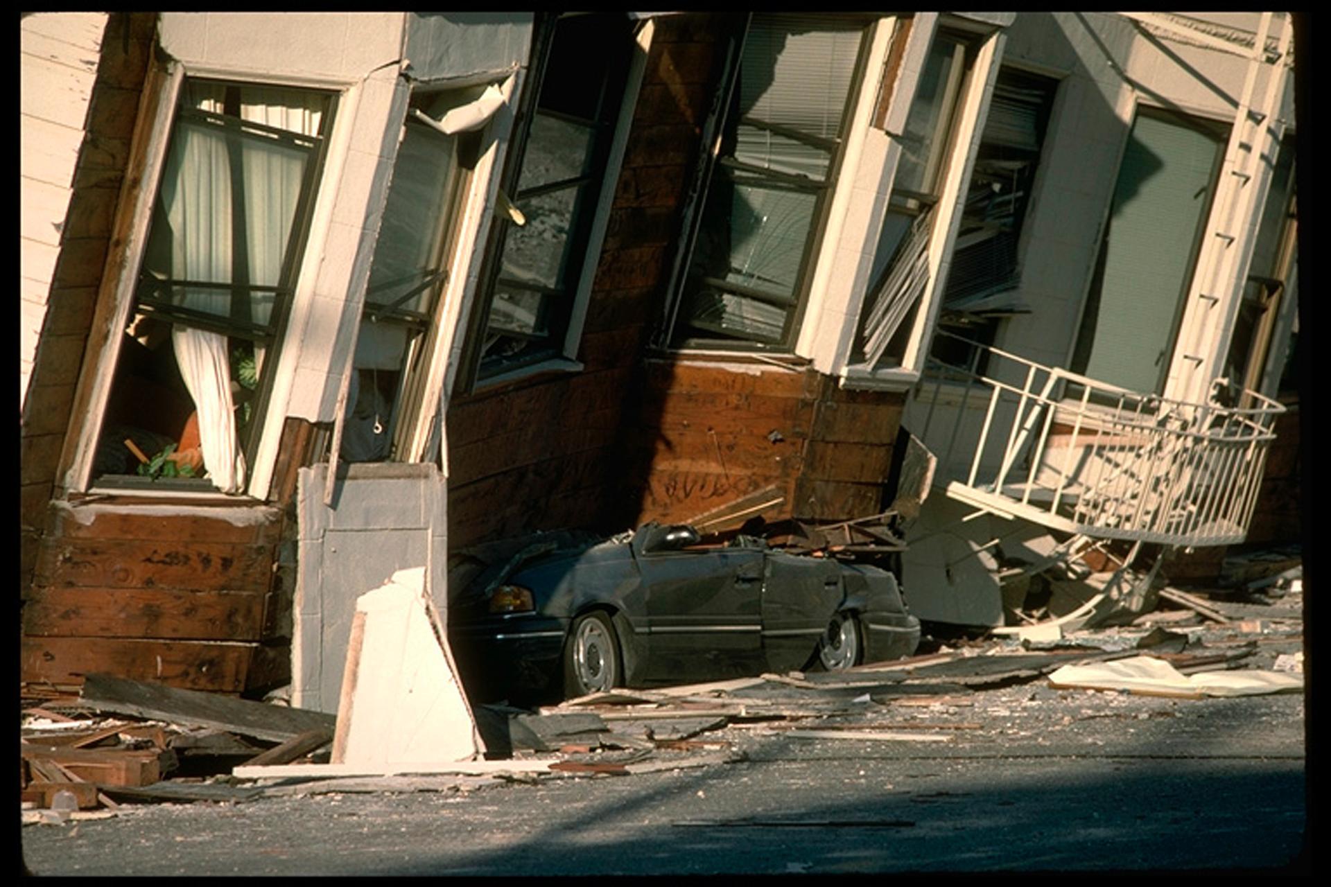An automobile lies crushed under the third story of this apartment building in the Marina District after the Oct. 17, 1989, Loma Prieta earthquake. The ground levels are no longer visible because of structural failure and sinking due to liquefaction. Sand and soil grains have faces that can cause friction as they roll and slide against each other, or even cause sticking and form small voids between grains. This complex behavior can cause soil to behave like a liquid under certain conditions such as earthquakes or when powders are handled in industrial processes. Mechanics of Granular Materials (MGM) experiments aboard the Space Shuttle use the microgravity of space to simulate this behavior under conditons that carnot be achieved in laboratory tests on Earth. MGM is shedding light on the behavior of fine-grain materials under low effective stresses. Applications include earthquake engineering, granular flow technologies (such as powder feed systems for pharmaceuticals and fertilizers), and terrestrial and planetary geology. Nine MGM specimens have flown on two Space Shuttle flights. Another three are scheduled to fly on STS-107. The principal investigator is Stein Sture of the University of Colorado at Boulder. Credit: J.K. Nakata, U.S. Geological Survey.