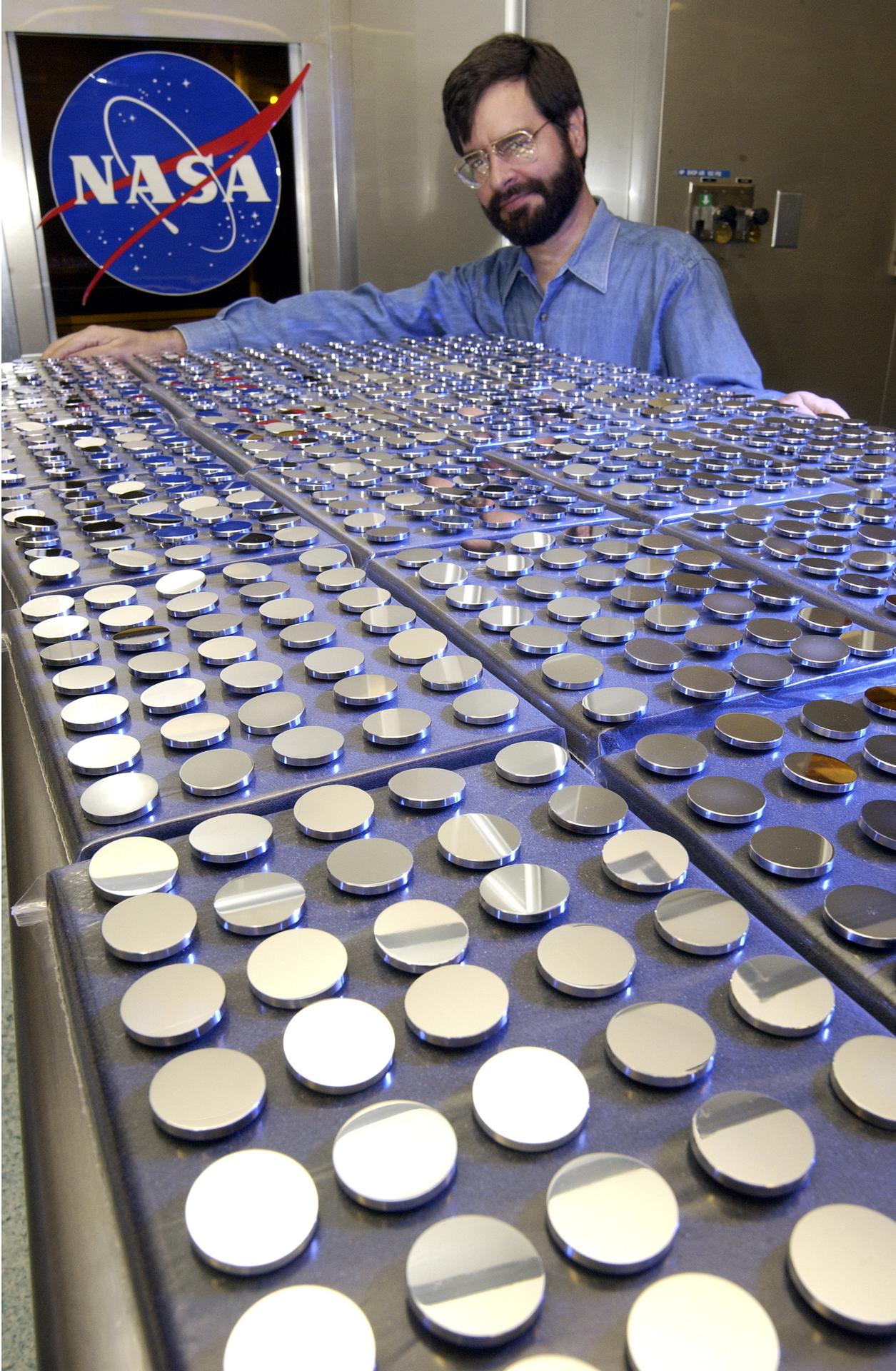 In this photograph, Vince Huegele of the Marshall Space Flight Center's (MSFC's) Space Optics Manufacturing Technology Center (SOMTC) inspects the coating on the mirrors for Starshine 3, a satellite that resembles a high-tech disco ball that was placed into Earth orbit. The sphere, which is covered by hundreds of quarter-sized mirrors that reflect sunlight to observers on the ground, helps students study the effects of solar activity on the Earth's atmosphere. Ed White Middle School in Huntsville, Alabama is among 500 schools worldwide whose students helped grind and polish mirrors for the Starshine 3 satellite as a part of the Starshine Project. The total of up to 1,500 mirrors will improve the sunlight flash rate and make the satellite more visible at twilight as it orbits the Earth. These mirrors have been coated with a scratch-resistant, anti-oxidizing layer of silicon dioxide by optical engineers and technicians at the Hill Air Force Base in Utah and MSFC. Starshine-3 was launched on an Athena I unmarned launch vehicle out of the Kodiak Launch Complex, Alaska, on September 29, 2001. Starshine 3 is nearly 37 inches (1 meter) in diameter, weighs 200 pounds (91 kilograms), and carries 1500 mirrors that were polished by approximately 40,000 students in 1,000 schools in 30 countries. Three small, optically-reflective spherical Starshine student satellites have been designed by the U.S. Naval Research Laboratory and built by an informal volunteer coalition of organizations and individuals in the U.S. and Canada. This coalition, called Project Starshine, is headquartered in Monument, Colorado.