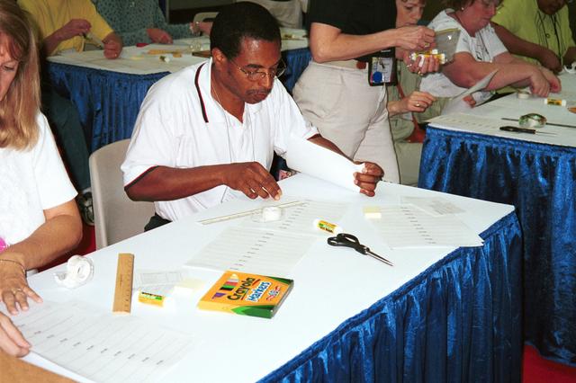 One of NASA's newest education publications made its debut at the arnual National Council of Teachers of Mathematics (NCTM) conference held in Orlando, Florida April 5-7. How High Is It? An Educator's Guide with Activities Focused on Scale Models of Distances was presented by Carla Rosenberg of the National Center for Microgravity Research at Glenn Research Center. Rosenberg, an author of the Guide, led teachers in several hands-on activities from the Guide. This image is from a digital still camera; higher resolution is not available.