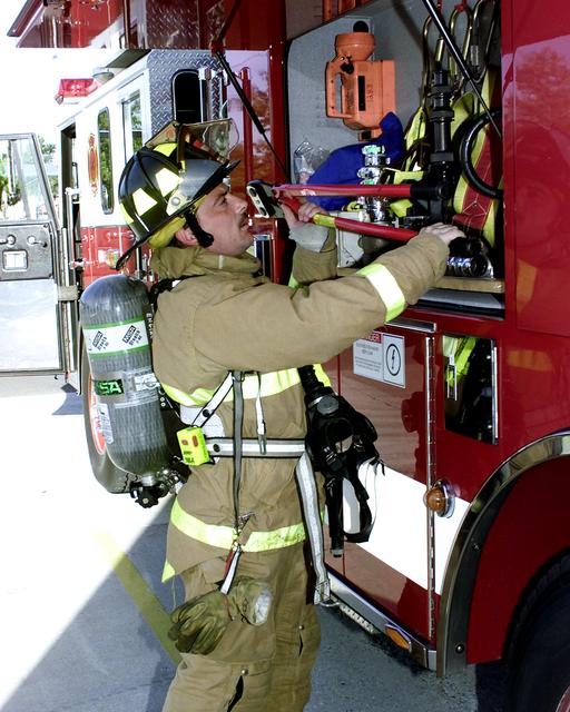 Technology used to provide thermal protection for Apollo astronauts and spacecraft components provides firefighters with better protective clothing and equipment. Spinoffs include a portable firefighting module, protective clothing for workers in hazardous environments, fire-retardant paints and forms, fireblocking coating for outdoor structures, and flame-resistant fabric. Perhaps the farthest reaching is the breathing apparatus worn by firefighters throughout the U.S. for protection against smoke inhalation injury. The breathing system weighs approximately 20 pounds, one-third less than past systems, and it enables the wearer to have improved mobility. It consists of a face mask, frame and harness, a warning device, and an air bottle. The basic air cylinder offers the same 30-minutes of operation time as its predecessor. The result is a drastic reduction in the number of inhalation injuries to firefighters. Though they have made many design modifications and refinements, manufacturers of breathing apparatus still incorporate the original NASA technology.