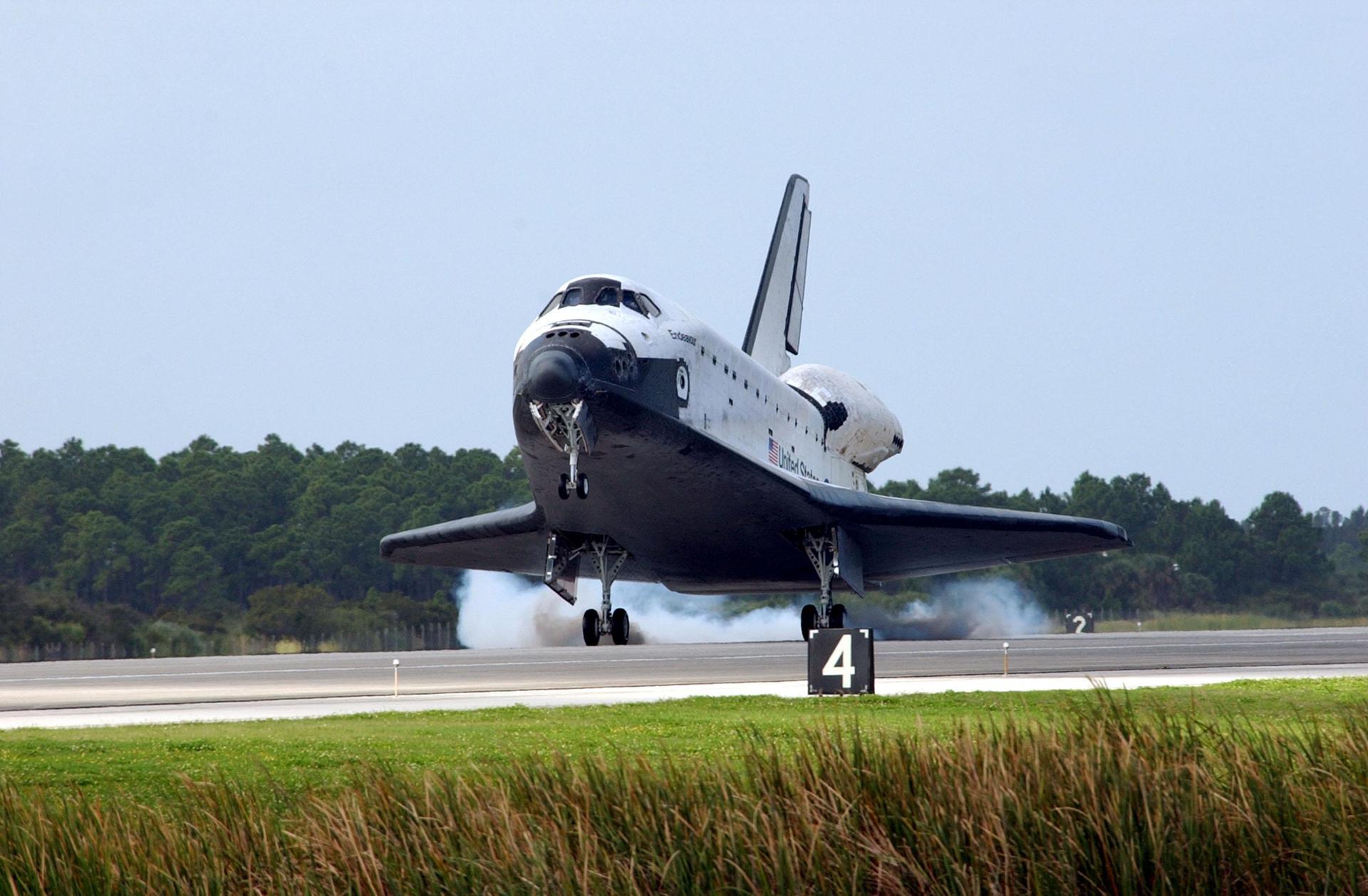 KENNEDY SPACE CENTER, FLA. - Orbiter Endeavour kicks up dust as it touches down on Runway 15 at the KSC Shuttle Landing Facility, completing mission STS-108. After a mission-elapsed time of 11 days, 19 hours and 35 minutes, the landing is the 57th at KSC in the history of the program. Main gear touchdown occurred at 12:55:10 p.m. EST (17:55:10 GMT), nose gear touchdown at 12:55:23 p.m. (17:55:23 GMT) , wheel stop at 12:56:13 p.m. (17:56:13 GMT). STS-108 was the 12th mission to the International Space Station. This mission was the 107th flight in the Shuttle program and the 17th flight for the orbiter. Endeavour carries both the mission crew and the Expedition 3 crew - Commander Frank Culbertson and cosmonauts Vladimir Dezhurov and Mikhail Tyurin - who are returning to Earth after 129 days in space on the Space Station