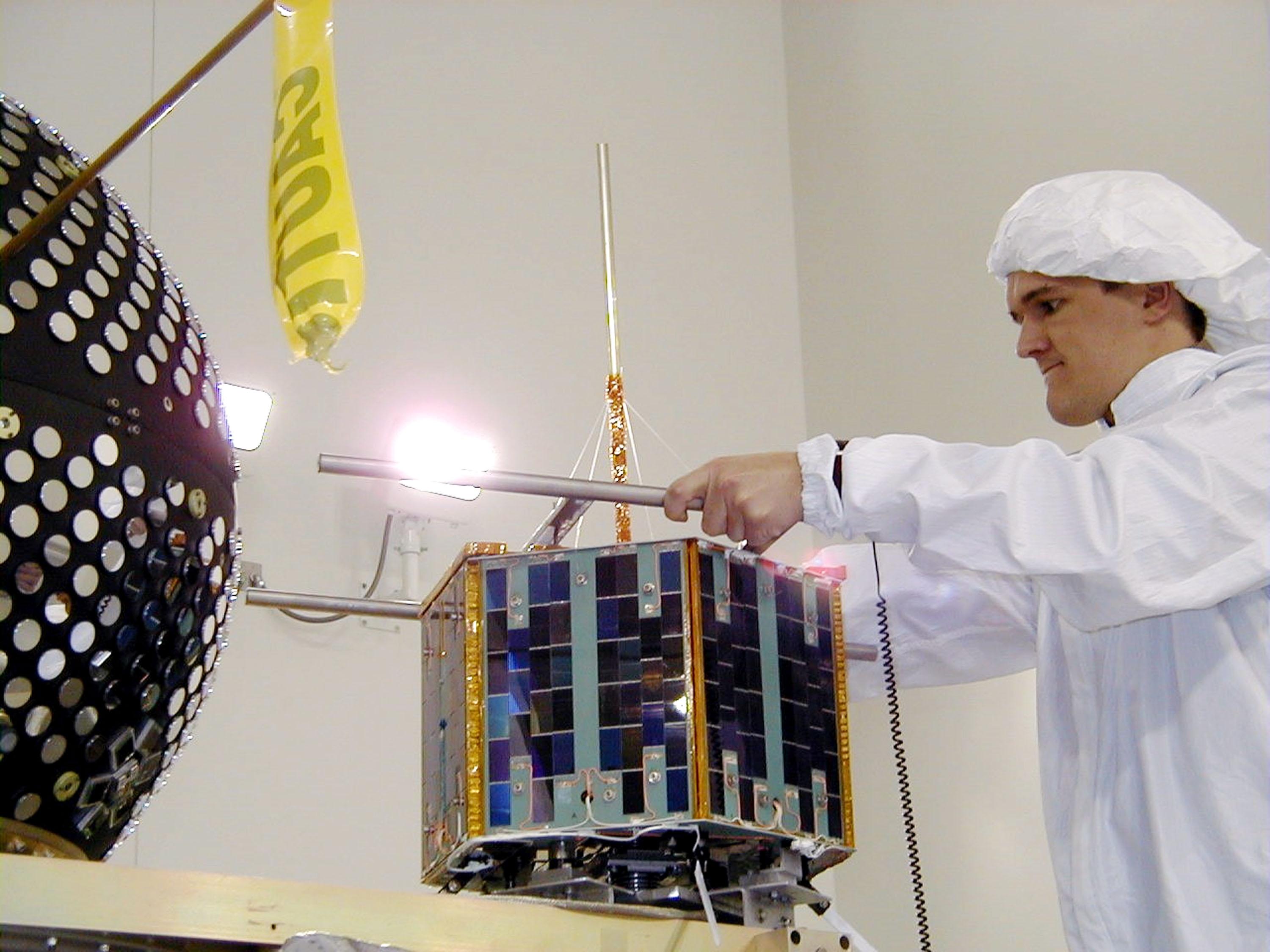 KODIAK ISLAND, Alaska -- The Sapphire payload is moved into position next to the Starshine 3 payload at Kodiak Island, Alaska, as preparations to launch Kodiak Star proceed. The first orbital launch to take place from Alaska's Kodiak Launch Complex, Kodiak Star is scheduled to lift off on a Lockheed Martin Athena I launch vehicle on Sept. 17 during a two-hour window that extends from 5 p.m. to 7 p.m. p.m. ADT. The payloads aboard include the Starshine 3, sponsored by NASA, and the PICOSat, PCSat and Sapphire, sponsored by the Department of Defense (DoD) Space Test Program.