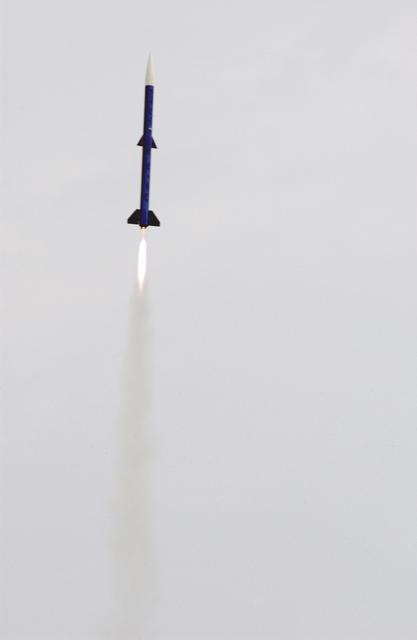 Filled with anticipation, students from three Huntsville area high schools: Randolph, Sparkman, and Johnson High Schools, counted down to launch the rockets they designed and built at the Army test site on Redstone Arsenal in Huntsville, Alabama. The projected two-mile high launch culminated more than a year's work and demonstrated the student team's ability to meet the challenge set by the Marshall Space Flight Center's (MSFC) Student Launch Initiative program to apply science and math to experience, judgment, and common sense, and proved to NASA officials that they have successfully built reusable launch vehicles (RLVs), another challenge set by NASA's SLI program. MSFC's SLI program is an educational effort that aims to motivate students to pursue careers in science, math, and engineering. It provides hands-on, practical aerospace experience. In this picture, a rocket built by Johnson High School students soars to it projected designation.