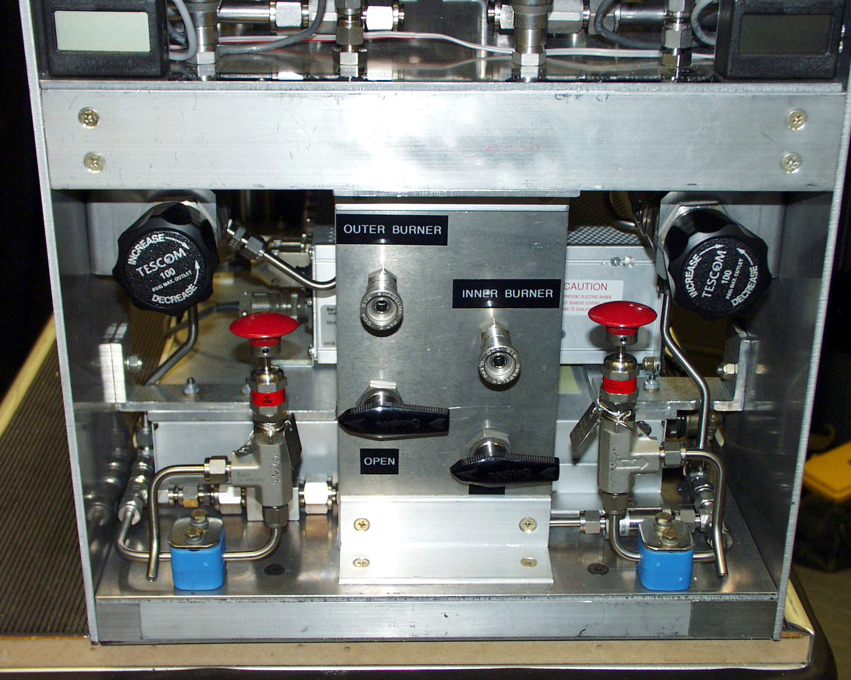 Interior of a combustion experiment apparatus used in the 2.2-second drop tower at NASA's Glenn Research Center. This was shown to students participating in the second Dropping in a Microgravity Environment (DIME) competition held April 23-25, 2002, at NASA's Glenn Research Center. Competitors included two teams from Sycamore High School, Cincinnati, OH, and one each from Bay High School, Bay Village, OH, and COSI Academy, Columbus, OH. DIME is part of NASA's education and outreach activities. Details are on line at http://microgravity.grc.nasa.gov/DIME_2002.html.