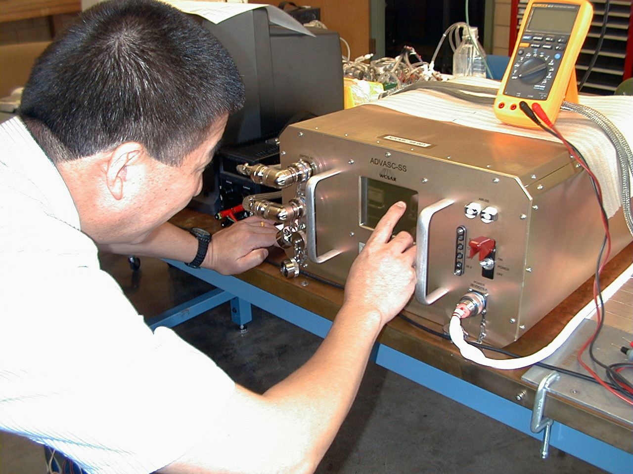 Dr. Weijia Zhou, director of the Wisconsin Center for Space Automation and Robotics at the University of Wisconsin-Madison, inspects the Advanced Astroculture(tm) plant growth unit before its first flight last spring. Coating technology is used inside the miniature plant greenhouse to remove ethylene, a chemical produced by plant leaves that can cause plants to mature too quickly. This same coating technology is used in a new anthrax-killing device. The Space Station experiment is managed by the Space Product Development Program at NASA's Marshall Space Flight Center in Huntsville, Ala. DuPont is partnering with NASA and the Wisconsin Center for Space Automation and Robotics (WCSAR) at the University of Wisconsin-Madison to grow soybeans aboard the Space Station to find out if they have improved oil, protein, carbohydrates or secondary metabolites that could benefit farmers and consumers. Principal Investigators: Dr. Tom Corbin, Pioneer Hi-Bred International Inc., a Dupont Company, with headquarters in Des Moines, Iowa, and Dr. Weijia Zhou, Wisconsin Center for Space Automation and Robotics (WCSAR), University of Wisconsin-Madison.