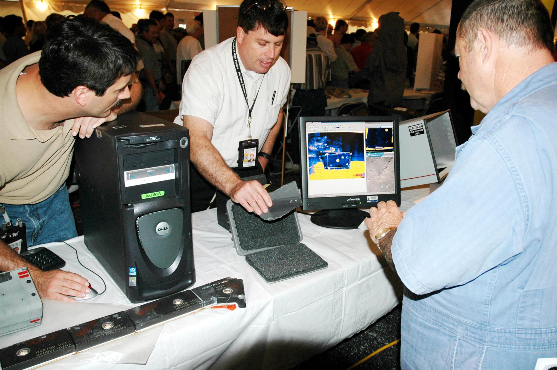 KENNEDY SPACE CENTER, FLA. - Inside a tent, employees at KSC look over an exhibit of special equipment during Spaceport Super Safety and Health Day. Vendors’ exhibits were set up in the parking areas outside the Vehicle Assembly Building and the OandC Building. The day-long event also featured presentations by guest speakers Dr. Pamela Peeke, Navy Com. Stephen E. Iwanowicz, NASA’s Dr. Kristine Calderon and Olympic-great Bruce Jenner. Super Safety and Health Day was initiated at KSC in 1998 to increase awareness of the importance of safety and health among the government and contractor workforce. The theme for this year’s event was “Safety and Health: A Winning Combination.”