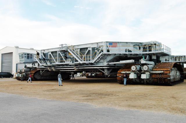 KENNEDY SPACE CENTER, FLA. - The newly shod Crawler Transporter is checked out before beginning its road test. The Crawler Transporter that will move Space Shuttle Discovery to the launch pad for Return to Flight is taking its first road test following the replacement of all its shoes. The crawlers have 456 shoes, 57 per belt (8 belts in all). Each shoe weighs 2,200 pounds. Cracks appeared in the shoes in recent years, spurring a need for replacement. The new manufacturer, in Duluth, Minn., has improved the design for a safe Return to Flight and use through the balance of the Space Shuttle Program.