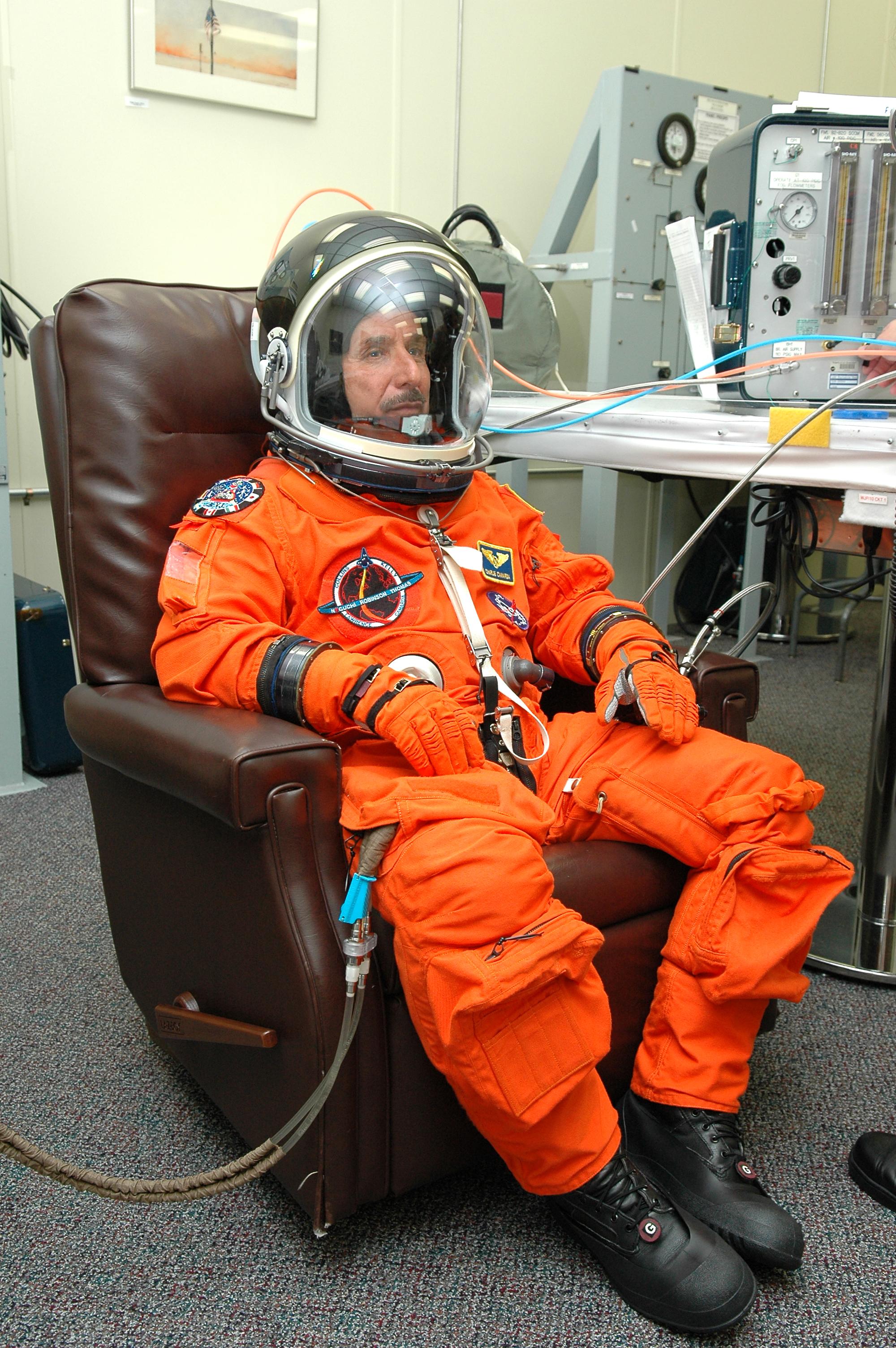 KENNEDY SPACE CENTER, FLA. - In the Operations and Checkout Building at NASA Kennedy Space Center, STS-114 Mission Specialist Charles Camarda has donned his launch and entry suit before heading to the launch pad. Camarda is making his first space flight on the historic Return to Flight mission STS-114 to the International Space Station. On its second attempt for launch, Discovery is scheduled to lift off at 10:39 a.m. EDT today from Launch Pad 39B. It is the 114th Space Shuttle flight and the 31st for Discovery. The 12-day mission is expected to end with touchdown at the Shuttle Landing Facility on Aug. 7.