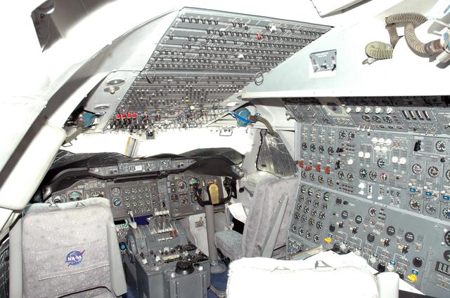 KENNEDY SPACE CENTER, FLA. - A view inside the Shuttle Carrier Aircraft, a modified Boeing 747. The plane carried the orbiter Discovery on a ferry flight to NASA Kennedy Space Center from Edwards Air Force Base in California, arriving Aug. 21. Returning to Earth from Return to Flight mission STS-114, Discovery landed at Edwards Aug. 9 after waive-off from KSC due to weather concerns.