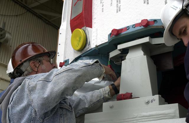 VANDENBERG AIR FORCE BASE, CALIF. - At NASA Space Launch Complex 2 on Vandenberg Air Force Base in California, the Boeing Delta II rocket, launch vehicle for the CALIPSO_CloudSat spacecraft, is prepared for lifting into the mobile service tower, or gantry. CALIPSO stands for Cloud-Aerosol Lidar and Infrared Pathfinder Satellite Observation. CALIPSO and CloudSat are highly complementary satellites and together will provide never-before-seen 3-D perspectives of how clouds and aerosols form, evolve, and affect weather and climate. CALIPSO and CloudSat will fly in formation with three other satellites in the A-train constellation to enhance understanding of our climate system. Launch of CALIPSO_CloudSat aboard a Boeing Delta II rocket is scheduled for 3:01 a.m. Sept. 29.