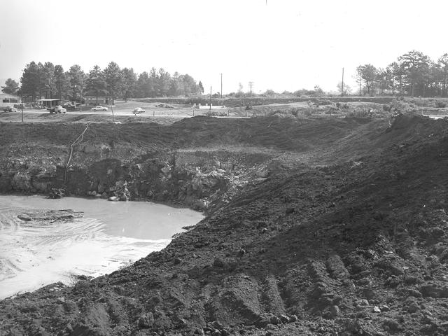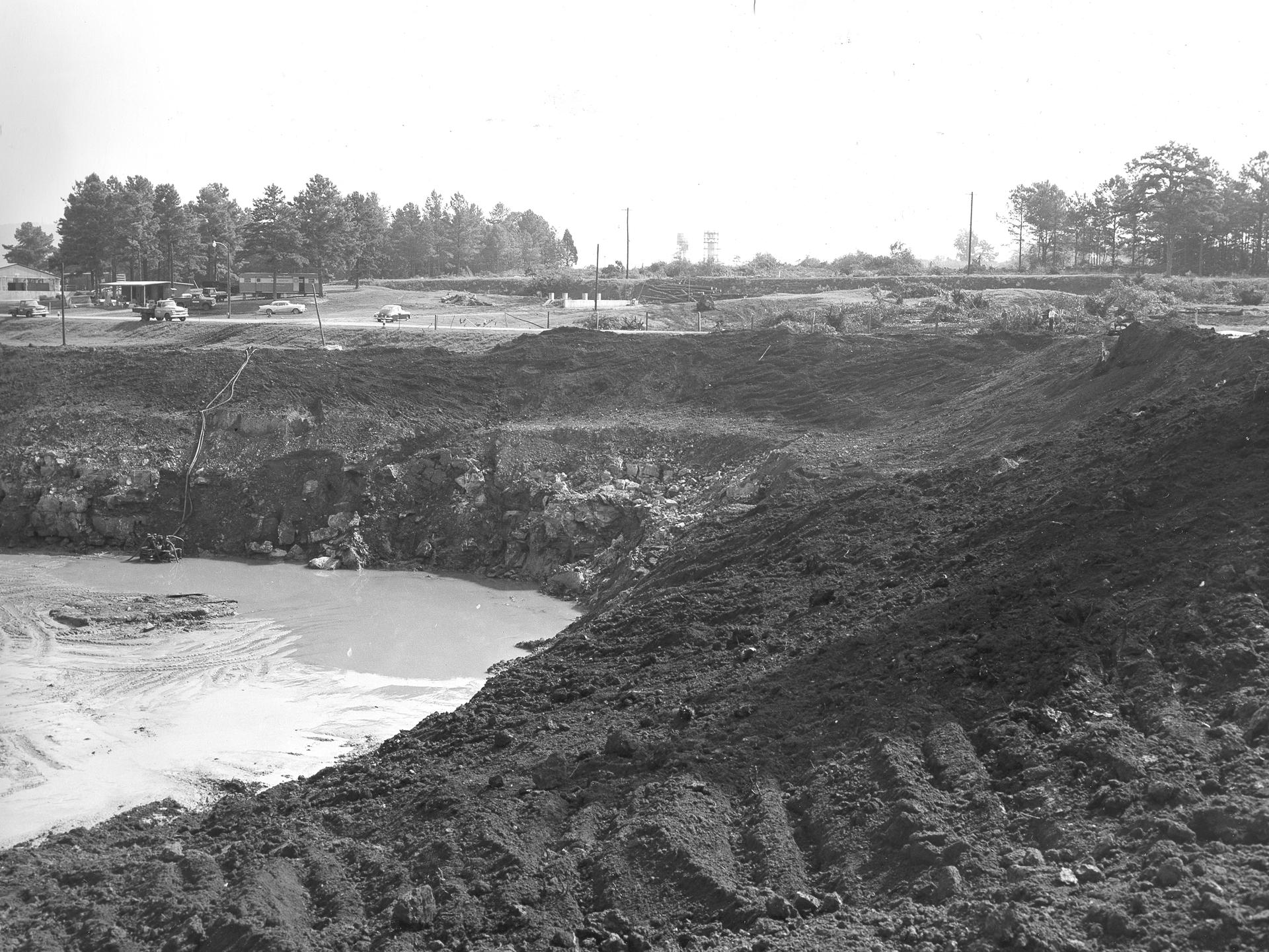 At its founding, the Marshall Space Flight Center (MSFC) inherited the Army’s Jupiter and Redstone test stands, but much larger facilities were needed for the giant stages of the Saturn V. From 1960 to 1964, the existing stands were remodeled and a sizable new test area was developed. The new comprehensive test complex for propulsion and structural dynamics was unique within the nation and the free world, and they remain so today because they were constructed with foresight to meet the future as well as on going needs. Construction of the S-IC Static test stand complex began in 1961 in the west test area of MSFC, and was completed in 1964. The S-IC static test stand was designed to develop and test the 138-ft long and 33-ft diameter Saturn V S-IC first stage, or booster stage, weighing in at 280,000 pounds. Required to hold down the brute force of a 7,500,000-pound thrust produced by 5 F-1 engines, the S-IC static test stand was designed and constructed with the strength of hundreds of tons of steel and 12,000,000 pounds of cement, planted down to bedrock 40 feet below ground level. The foundation walls, constructed with concrete and steel, are 4 feet thick. The base structure consists of four towers with 40-foot-thick walls extending upward 144 feet above ground level. The structure was topped by a crane with a 135-foot boom. With the boom in the upright position, the stand was given an overall height of 405 feet, placing it among the highest structures in Alabama at the time. This photo shows the construction progress of the test stand as of August 18, 1961.