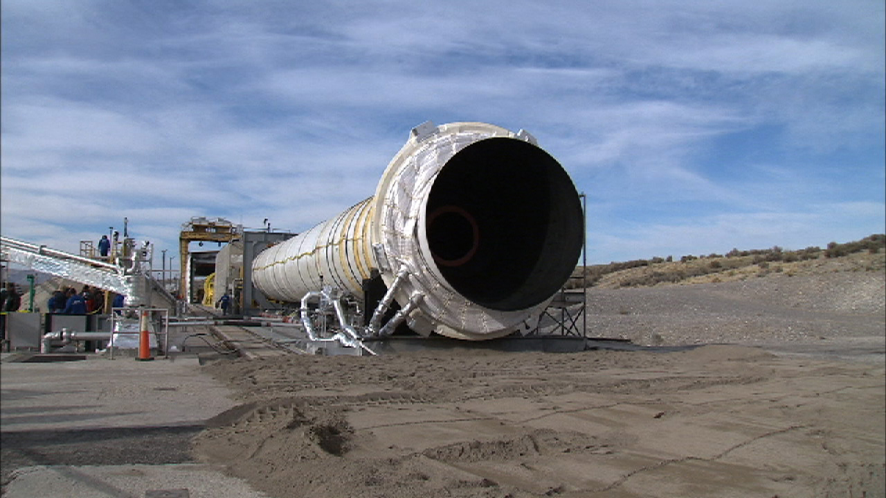 Shown is a test of the TEM-13 Solid Rocket Motor in support of the Ares/CLV first stage at ATK, Utah . Constellaton/Ares project. This image is extracted from a high definition video file and is the highest resolution available.