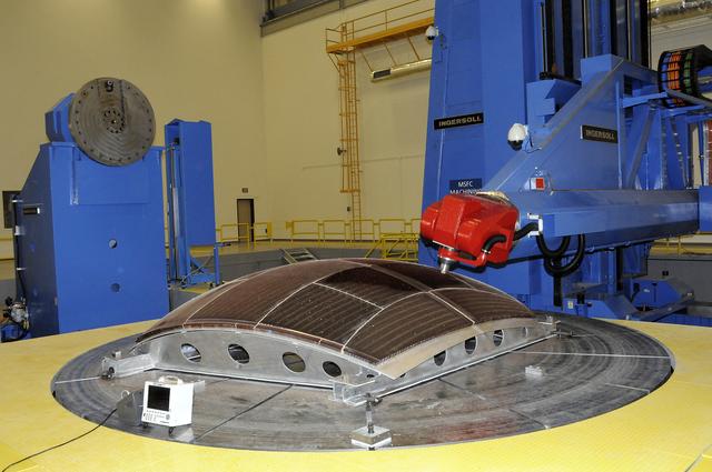 7-AXIS MILLING MACHINE PERFORMING THE ROUGH CUT ON THE 2ND QUARTER DOME DEMONSTRATION ARTICLE HONEYCOMB CORE