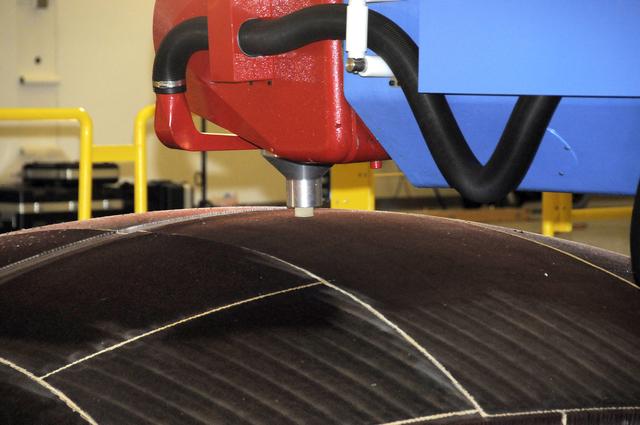 7-AXIS MILLING MACHINE PERFORMING THE ROUGH CUT ON THE 2ND QUARTER DOME DEMONSTRATION ARTICLE HONEYCOMB CORE