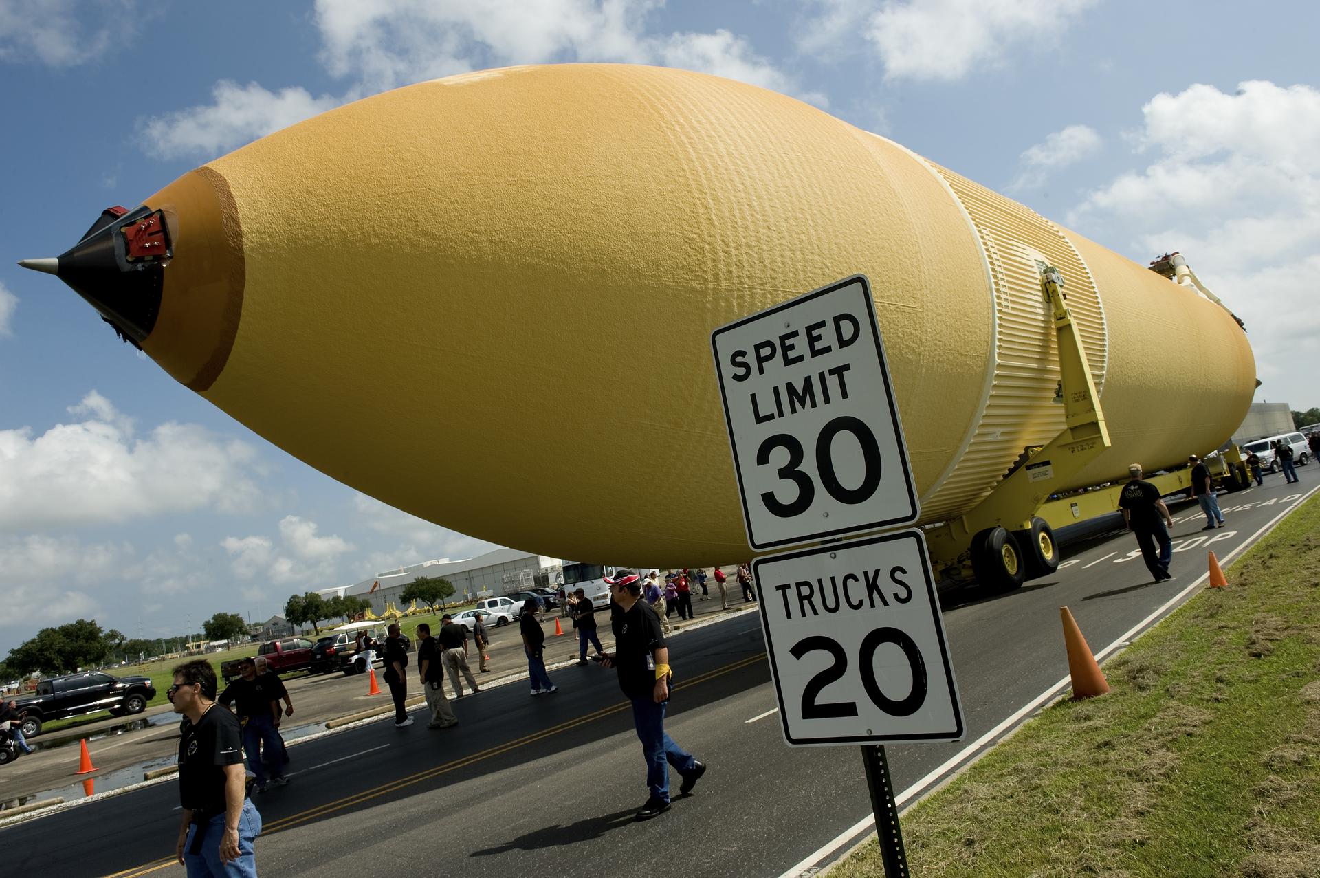 THE FINAL PRODUCTION EXTERNAL TANK ROLLS TOWARDS IT’S BARGE RIDE TO CAPE CANVERAL, FL AFTER A CEREMONY MARKING THE OCCASION AT THE MICHOUD ASSEMBLY FACILITY IN NEW ORLEANS, LA.