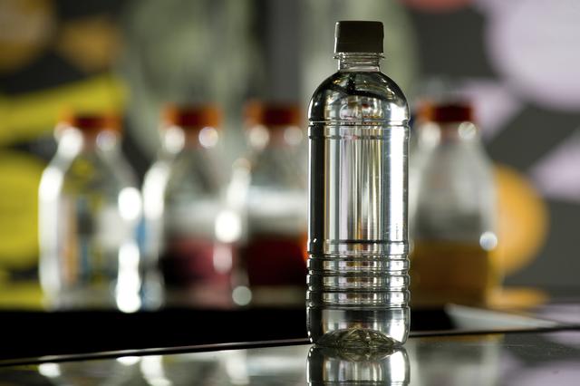 PHOTOS OF BOTTLES CONTAINING URINE, PURIFIED WATER, AND OTHER LIQUIDS AS PART OF THE STEPS OF THE ECLSS PROGRAM