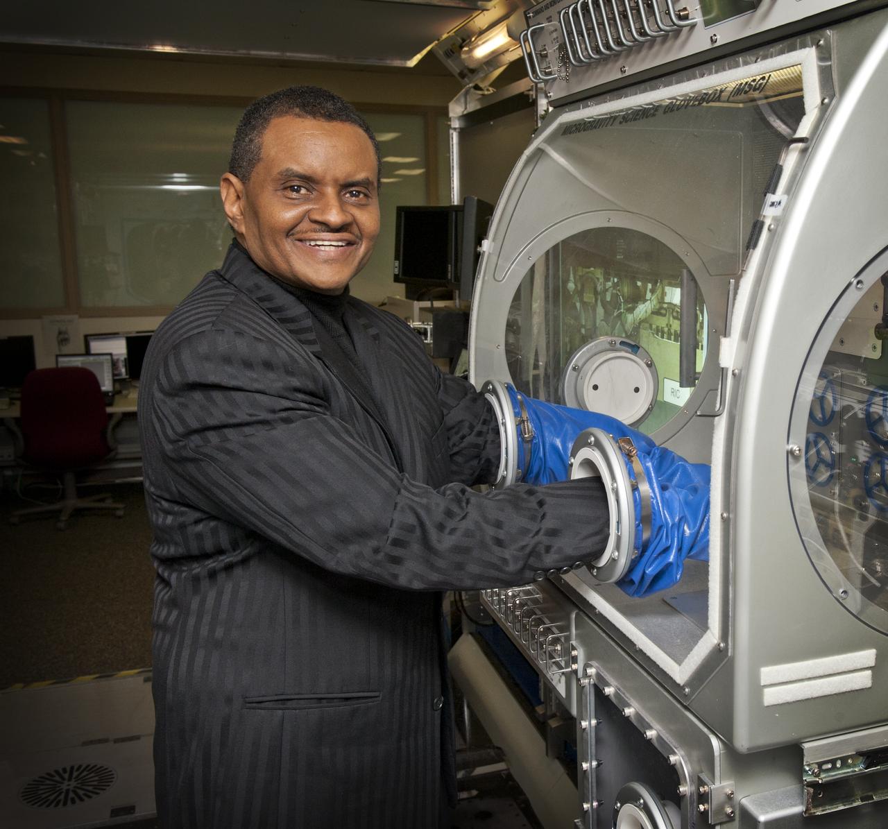NATHANIEL (NATE) BOCLAIR PHOTOGRAPHED AT A GLOVEBOX STATION IN THE INTERNATIONAL SPACE STATION (ISS) MOCK-UP LOCATED IN ROOM M-103 OF BUILDING 4663