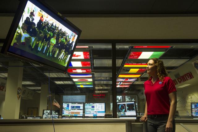 PAYLOAD OPERATIONS INTEGRATION CENTER TEAM MEMBER STEPHANIE DUDLEY TALKS TO STUDENTS ABOUT HER DAY-TO-DAY JOB DUTIES AS A PAYLOAD OPERATIONS DIRECTOR.