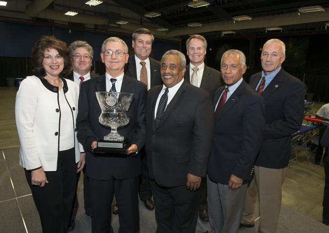 NASA ADMINISTRATOR CHARLES BOLDEN PRESENTS CENTER LEADERS WITH THE SMALL BUSINESS ADMINISTRATOR’S CUP. PARTICIPATING IN THE AWARD CEREMONY WERE, FROM LEFT, MARSHALL ASSOCIATE DIRECTOR ROBIN HENDERSON, DAVID IOSCO, DEPUTY DIRECTOR OF MARSHALL’S OFFICE OF PROCUREMENT; MARSHALL SMALL BUSINESS SPECIALIST DAVID BROCK; MARSHALL CENTER DIRECTOR PATRICK SCHEUERMANN; GLENN DELGADO, ASSOCIATE ADMINISTRATOR OF NASA’S OFFICE OF SMALL BUSINESS PROGRAMS; KIM WHITSON, DIRECTOR OF MARSHALL’S OFFICE OF PROCUREMENT; NASA ADMINISTRATOR CHARLES BOLDEN; AND TERRY WILCUTT, ASSOCIATE ADMINISTRATOR OF NASA’S OFFICE OF SAFETY AND MISSION ASSURANCE.