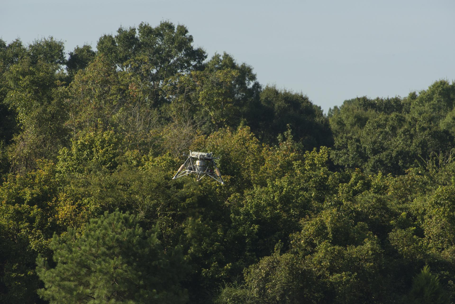 TEST FLIGHT OF THE LANDER PROTOTYPE “MIGHTY EAGLE” OVER A SIMULATED LUNAR LANDSCAPE. SEPTEMBER 20, 2013