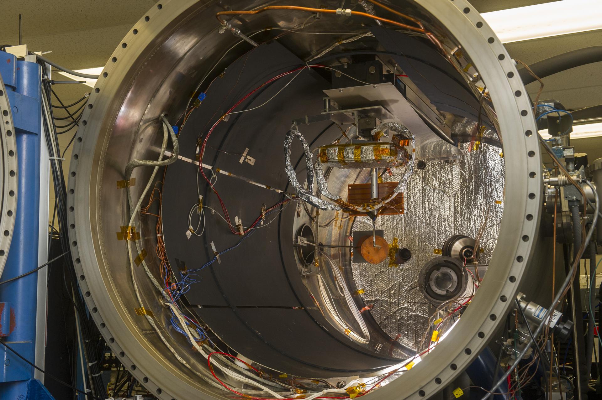 BLDG. 4605 PLASMA ENVIRONMENT TEST LABORATORY. VACUUM CHAMBER OPEN WITH SAMPLE SETUP