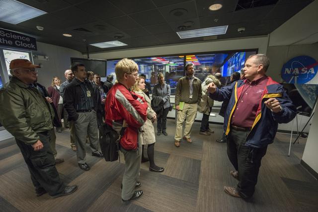 SPACE STATION SCIENCE INVESTIGATORS FROM AROUND THE WORLD TOUR THE PAYLOAD OPERATIONS INTEGRATION CENTER (POIC). THE TOUR WAS LED BY ASTRONAUT AND PAYLOAD OPERATIONS DIRECTOR AT MSFC T.J. CREAMER. WHEN SCIENTIFIC EXPERIMENTS REACH THE STATION, PARTICIPANTS IN THE TOUR WILL WORK WITH MSFC CONTROLLERS IN THE POIC WHO CAN SEND COMMANDS TO THE EXPERIMENTS, MONITOR DATA, AND ASSIST THE ISS CREW.