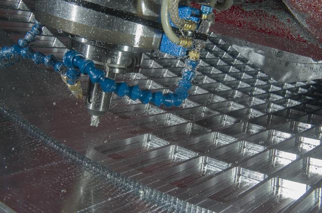 7-AXIS MILLING MACHINE CUTS ORTHOGRID TOOL PATH ON 8 FOOT CF1 BARREL IN SUPPORT OF SHELL BUCKLE TESTING