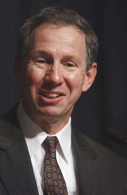Michael Griffin addresses the media during his first press conference as NASA Administrator, Monday, April 18, 2005, at NASA Headquarters in Washington, DC. Photo Credit: (NASA/Renee Bouchard)