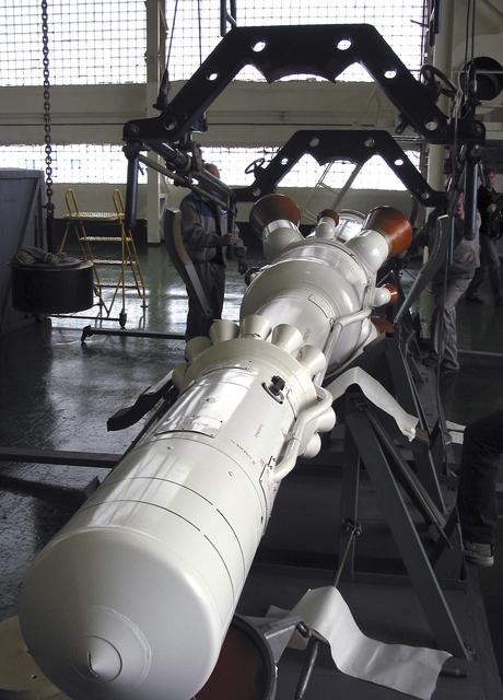 The Soyuz TMA-8 capsule was mated Monday, March 27, 2006 to its booster in preparation for the launch on March 30, 2006 carrying Expedition 13 crew members, Jeffrey N. Williams, Science Officer and Flight Engineer; Pavel V. Vinogradov, Russia’s Federal Space Agency International Space Station Commander; and Marcos Pontes, Brazilian Space Agency Soyuz crew member. Baikonur Cosmodrome in Baikonur, Kazakhstan. Photo Credit: (NASA/Victor Zelentsov)