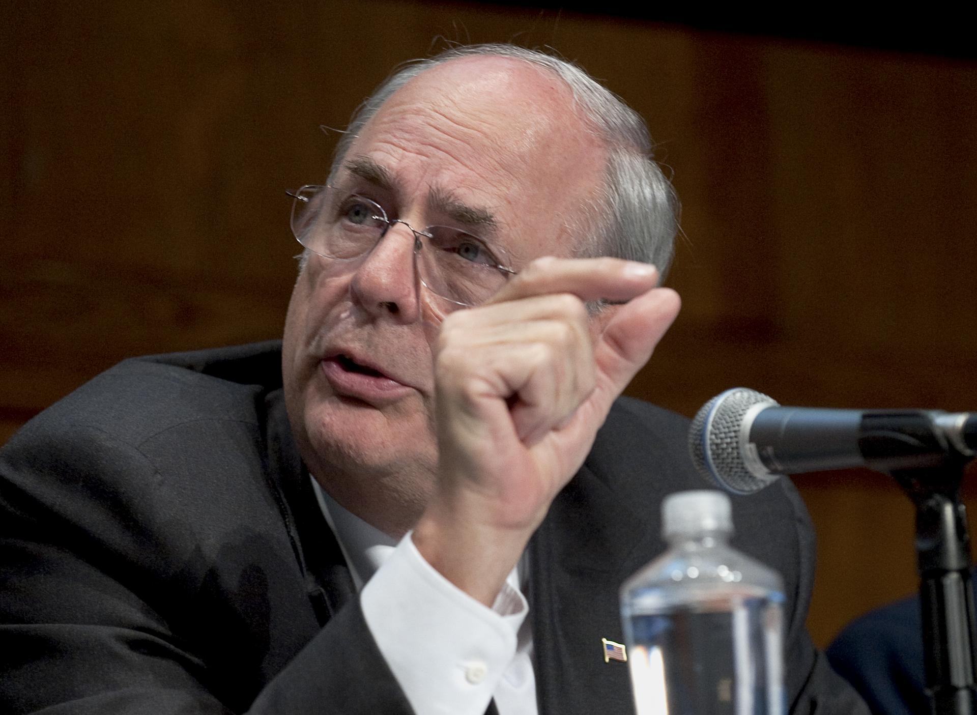 Norman Augustine, chair of the Human Space Flight Review Committee, makes a point during the first of several public meetings at different U.S. locations, Wednesday, June 17, 2009, at the Carnegie Institution in Washington. The panel will examine ongoing and planned NASA development activities and potential alternatives in order to present options for advancing a safe, innovative, affordable and sustainable human space flight program following the space shuttle's retirement. The committee wil present its results by August 2009. Photo Credit: (NASA/Paul E. Alers)