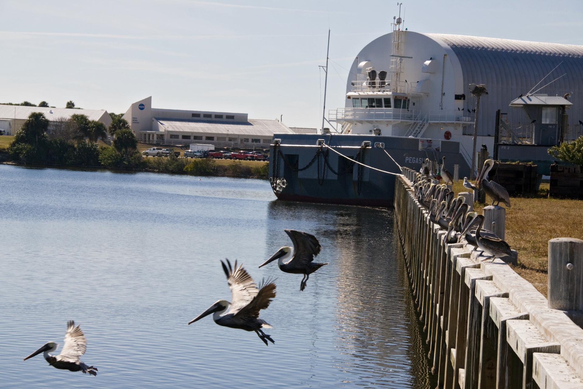 KSC WILDLIFE - PELICANS IN THE LC39 TURN BASIN
