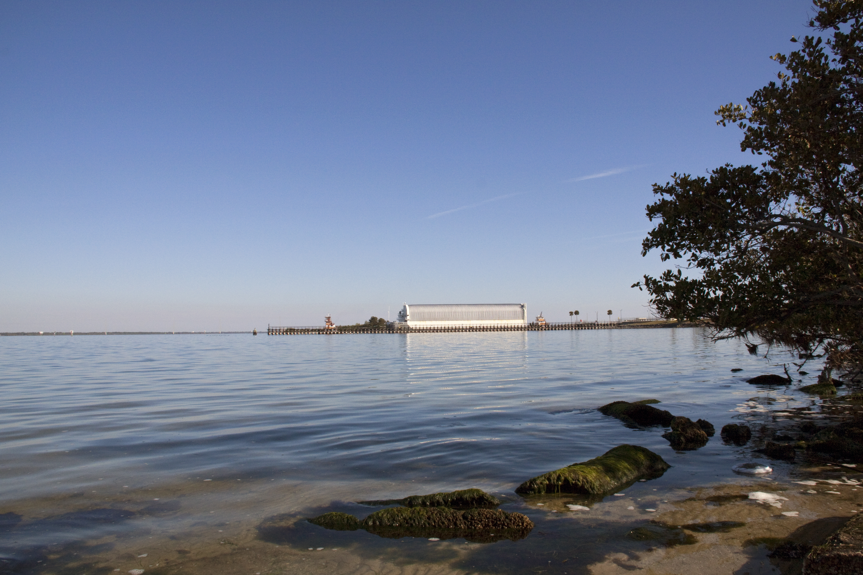 CAPE CANAVERAL, Fla. – The Pegasus barge carrying External Tank-136 arrives near the turn basin at Kennedy Space Center in Florida, from NASA’s Michoud Assembly Facility near New Orleans. ET-136 will be used to launch space shuttle Atlantis on the STS-132 mission to the International Space Station. Launch is targeted for May 14. For more information on the components of the space shuttle and the STS-132 mission, visit http:__www.nasa.gov_mission_pages_shuttle_shuttlemissions_sts132_index.html. Photo credit: NASA_Troy Cryder