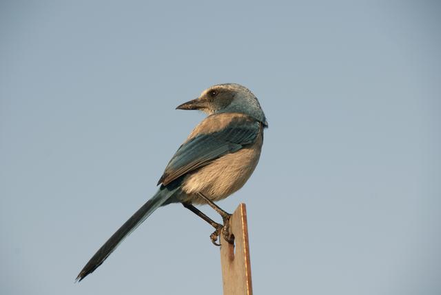 CAPE CANAVERAL, Fla. - At NASA's Kennedy Space Center in Florida, a Florida scrub jay is caught taking a break from his daily routine. The birds are one of several threatened species that reside on the Merritt Island National Wildlife Refuge which coexists with Kennedy Space Center. Scrub is a habitat unique to Florida, and one of the most important habitats for endangered species in the state. Species like the scrub jay, gopher tortoise and indigo snake rely on this habitat for food and shelter. The scrub oak acorn, for example, is a primary food source for the Florida scrub jay. Photo credit: NASA_Jim Grossmann