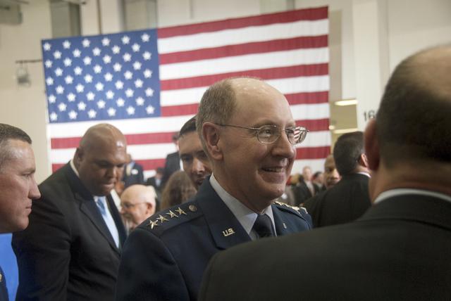 CAPE CANAVERAL, Fla. - In the Operations and Checkout Building at NASA's Kennedy Space Center in Florida, Gen. C. Robert 'Bob' Kehler, Commander of the Air Force Space Command at Peterson Air Force Base in Colorado, speaks with other members of the Conference on the American Space Program for the 21st Century following President Barack Obama's remarks describing the new course his administration is charting for NASA and the future of U.S. leadership in human spaceflight. Photo credit: NASA_Jim Grossmann