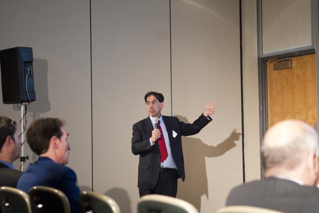 CAPE CANAVERAL, Fla. - In the Atlas_Redstone Room of the Debus Center at NASA's Kennedy Space Center Visitor Complex in Florida, Dr. Edward F. Crawley, Ford professor of engineering at MIT, speaks to the attendees at the 'Expanding our Reach into the Solar System' break-out session, part of the Conference on the American Space Program for the 21st Century. The panel included Scott Hubbard, former director of NASA's Ames Research Center, John Holdren, assistant to the President for science and technology and director of the White House Office of Science and Technology Policy and NASA, panel moderator; NASA Astronaut John Grunsfeld and Scott Hubbard, former director of NASA's Ames Research Center. Photo credit: NASA_Jim Grossmann.