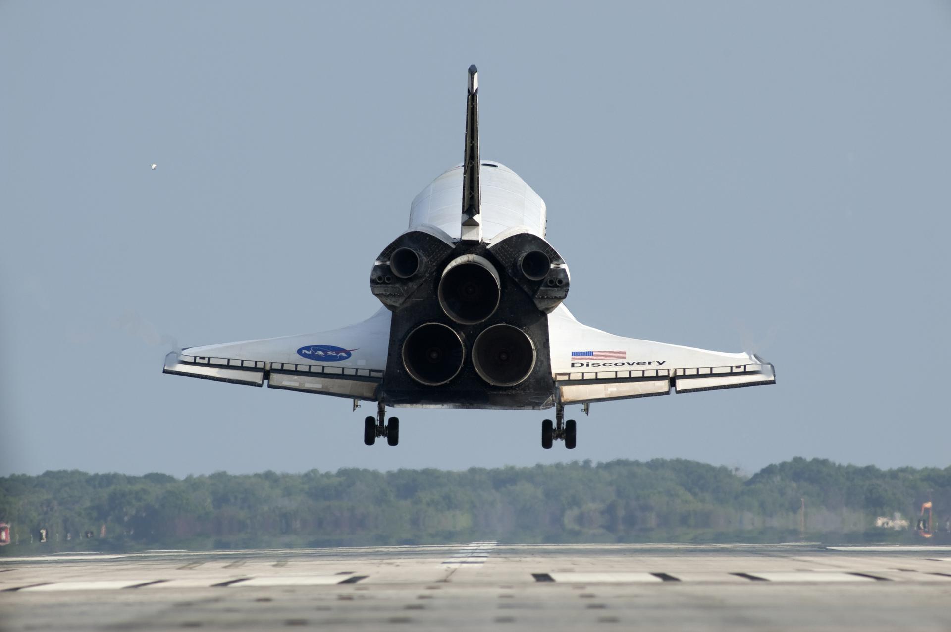 CAPE CANAVERAL, Fla. - Space shuttle Discovery is moments away from touchdown on Runway 33 at the Shuttle Landing Facility at NASA's Kennedy Space Center in Florida. Landing was at 9:08 a.m. EDT, completing the 15-day STS-131 mission to the International Space Station. Main gear touchdown was at 9:08:35 a.m. EDT followed by nose gear touchdown at 9:08:47 a.m. and wheelstop at 9:09:33 a.m. Aboard are Commander Alan Poindexter; Pilot James P. Dutton Jr.; and Mission Specialists Rick Mastracchio, Clayton Anderson, Dorothy Metcalf-Lindenburger, Stephanie Wilson and Naoko Yamazaki of the Japan Aerospace Exploration Agency. The seven-member STS-131 crew carried the multi-purpose logistics module Leonardo, filled with supplies, a new crew sleeping quarters and science racks that were transferred to the International Space Station's laboratories. The crew also switched out a gyroscope on the station’s truss, installed a spare ammonia storage tank and retrieved a Japanese experiment from the station’s exterior. STS-131 is the 33rd shuttle mission to the station and the 131st shuttle mission overall. For information on the STS-131 mission and crew, visit http:__www.nasa.gov_mission_pages_shuttle_shuttlemissions_sts131_index.html. Photo credit: NASA_Tony Gray and Tom Farrar