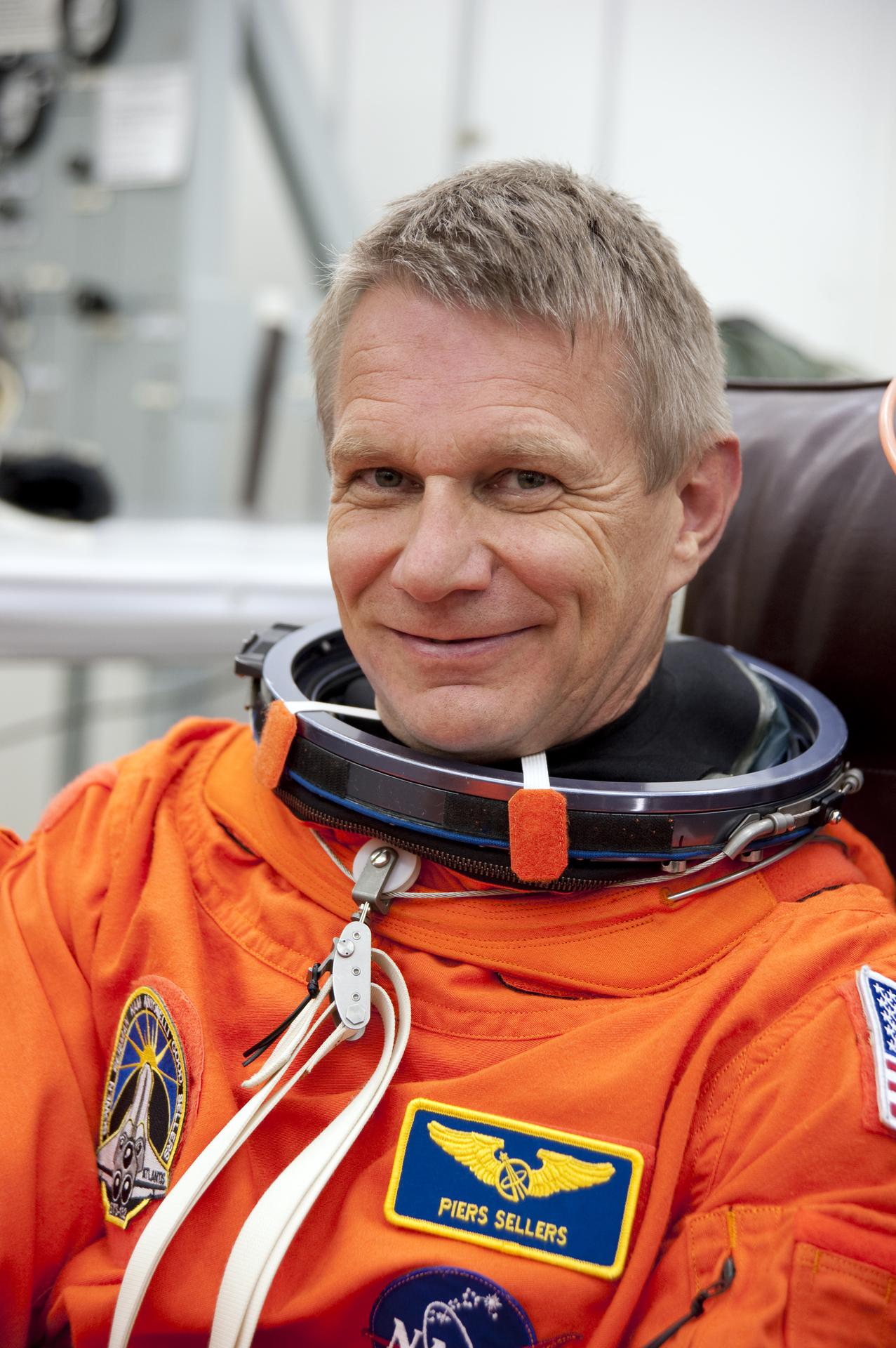 CAPE CANAVERAL, Fla. - In the Operations and Checkout Building at NASA's Kennedy Space Center in Florida, the astronauts of space shuttle Atlantis' STS-132 crew put on their launch-and-entry suits before heading to the Astrovan for the ride to Launch Pad 39A. Mission Specialist Piers Sellers, seen here, is making his third spaceflight. Liftoff of the STS-132 mission is set for 2:20 p.m. EDT on May 14. The six-member STS-132 crew will deliver the Russian-built Mini Research Module-1 to the International Space Station. Named Rassvet, Russian for 'dawn,' the module is the second in a series of new pressurized components for Russia and will be permanently attached to the Earth-facing port of the Zarya control module. Rassvet will be used for cargo storage and will provide an additional docking port to the station. Also aboard Atlantis is an Integrated Cargo Carrier, or ICC, an unpressurized flat bed pallet and keel yoke assembly used to support the transfer of exterior cargo from the shuttle to the station. STS-132 is the 34th mission to the station and the last scheduled flight for Atlantis. For more information on the STS-132 mission objectives, payload and crew, visit http:__www.nasa.gov_mission_pages_shuttle_shuttlemissions_sts132_index.html. Photo Credit: NASA_Kim Shiflett