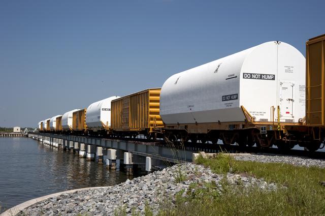 STS-335 LAUNCH ON NEED - LAST SRB SEGMENTS ARRIVAL - DRAW BRIDGE OVER BANANA RIVER