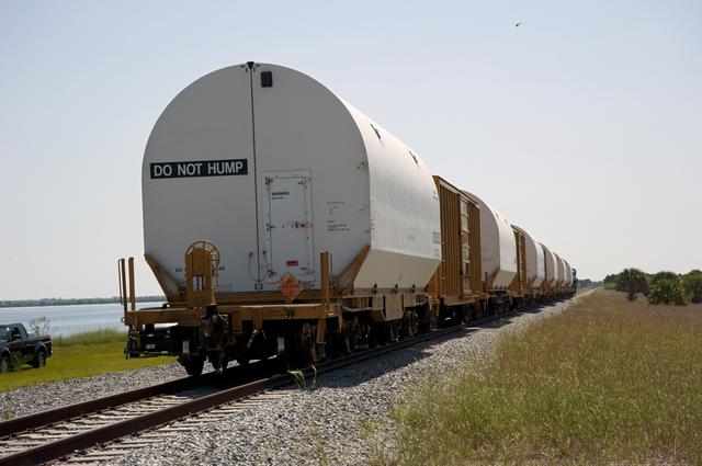 STS-335 LAUNCH ON NEED - LAST SRB SEGMENTS ARRIVAL - DRAW BRIDGE OVER BANANA RIVER
