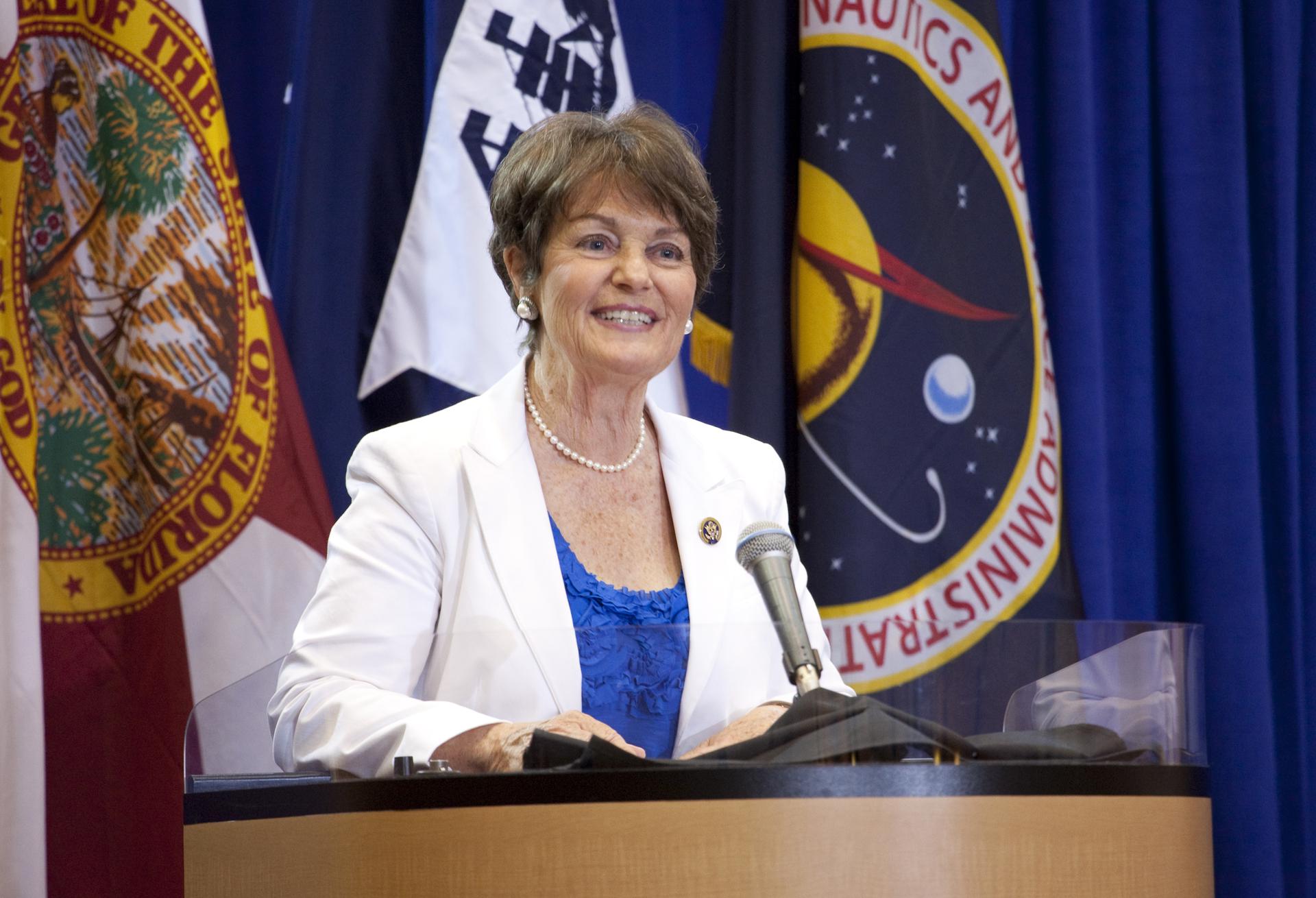 ORLANDO, Fla. – Rep. Suzanne Kosmas of Florida speaks during a town hall meeting at the Orlando Airport Hyatt Hotel as part of the Presidential Task Force on Space Industry Work Force and Economic Development. The task force heard from local leaders about ways to strengthen the work force as NASA moves toward retirement of the Space Shuttle Program. The task force is a $40 million, multi-agency initiative for regional and economic growth to assist the Space Coast as the country’s space exploration efforts expand and transform. Photo credit: NASA_Amanda Diller