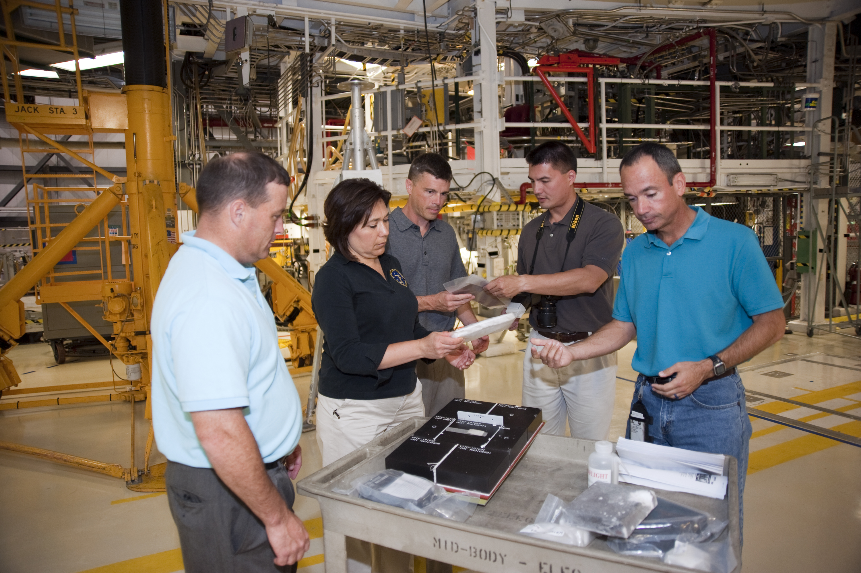 CAPE CANAVERAL, Fla. --- At NASA's Kennedy Space Center in Florida, the Class of 2009 Astronaut Candidates, also called ASCANs, check out heat shield tiles in Orbiter Processing Facility-1. Inside the facility, space shuttle Atlantis is being processed for the 'launch on need,' or potential rescue mission for the final scheduled shuttle flight, Endeavour's STS-134 mission. The new astronaut candidates for NASA are Serena M. Aunon, Jeanette J. Epps, Air Force Maj. Jack D. Fischer, Air Force Lt. Col. Michael S. Hopkins, Kjell N. Lindgren, Kathleen 'Kate' Rubins, Navy Cmdr. Scott D. Tingle, Army Lt. Col. Mark T. Vande, and Navy Lt. Cmdr. Gregory R. 'Reid' Wiseman. The new astronaut candidates for the Japan Aerospace Exploration Agency, or JAXA, are Norishige Kanai, Takuya Onishi and Kimiya Yui. The new astronaut candidates for the Canadian Space Agency, or CSA, are Jeremy Hansen and David Saint-Jacques. Photo Credit: NASA_Kim Shiflett