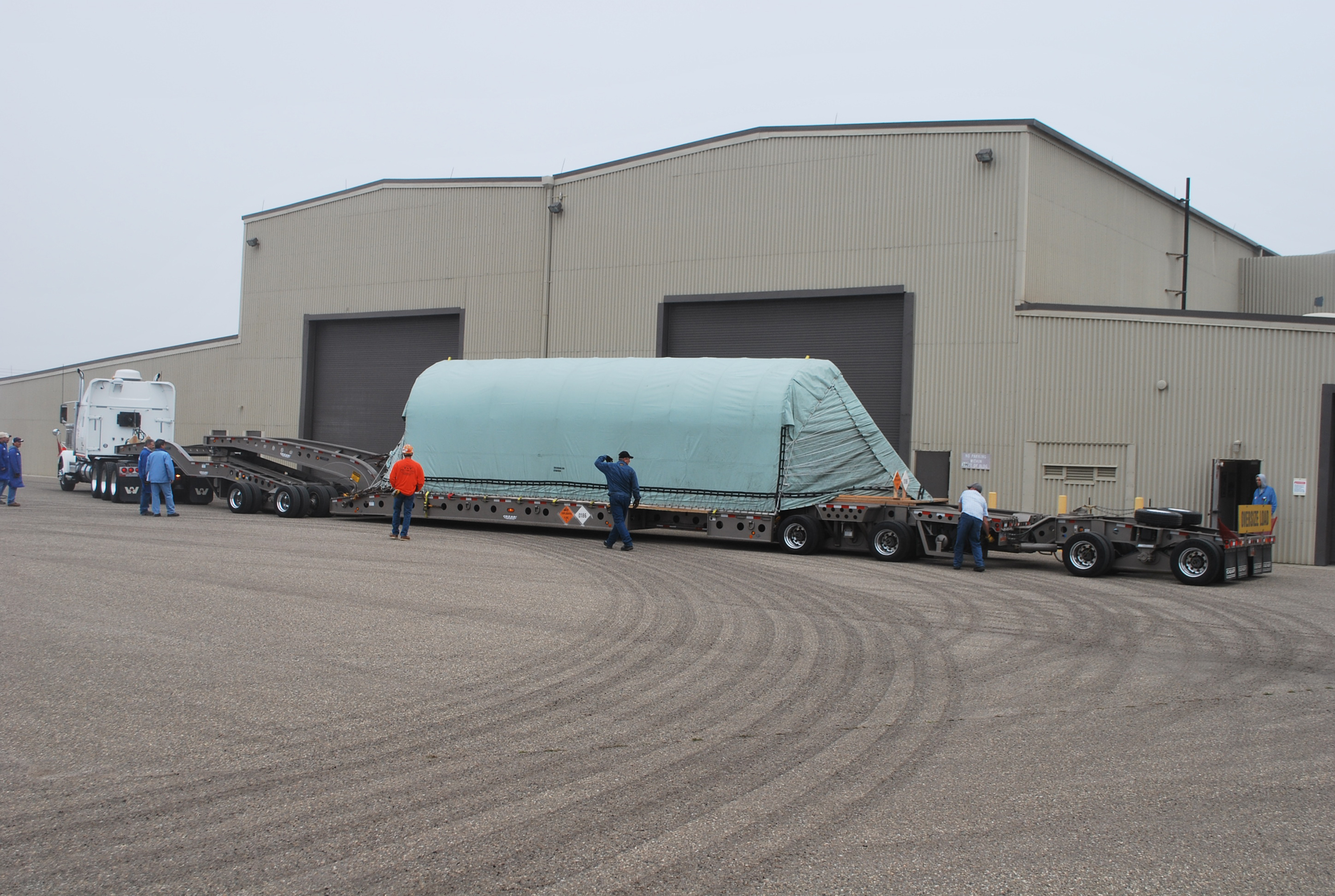 VANDENBERG AIR FORCE BASE, Calif. -- The Stage 0 motor for the Taurus XL launch vehicle arrives at Vandenberg Air Force Base in California. The motor will help carry NASA's Glory satellite into low Earth orbit. Glory is scheduled to launch in November from Vandenberg's Launch Pad SLC 576-E. Once Glory reaches orbit, it will collect data on the properties of aerosols and black carbon. It also will help scientists understand how the sun's irradiance affects Earth's climate. Photo credit: NASA_Randy Beaudoin, VAFB