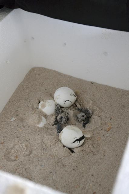 CAPE CANAVERAL, Fla. -- In a secure, climate-controlled facility at NASA's Kennedy Space Center in Florida, newly-hatched Loggerhead turtles emerge from their eggs brought from beaches along the northern U.S. Gulf Coast. The eggs will be monitored by biologists and hatchery workers until incubation is complete. The hatchlings will be released at different points along a 100-mile stretch of the Atlantic Ocean shoreline. That includes beaches adjacent to the Merritt Island National Wildlife Refuge, which is located inside Kennedy. The release and relocation work is part of an effort by the U.S. Fish and Wildlife Service, the Florida Fish and Wildlife Conservation Commission, the National Park Service, NOAA, FedEx and conservationists to help minimize the risk to this year's sea turtle hatchlings from impacts of the BP Deepwater Horizon oil spill in the Gulf of Mexico. This plan involves carefully moving an anticipated 700 nests during the next several months. Photo credit: NASA_Troy Cryder