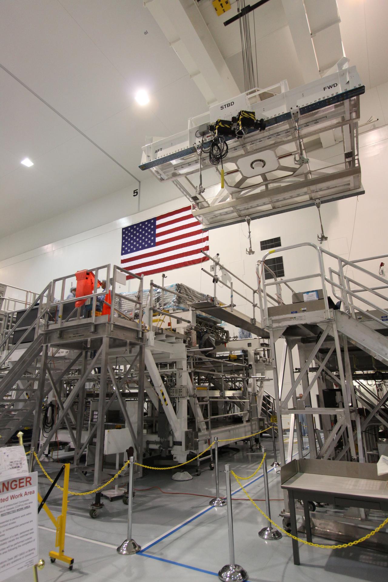 STS-133 Hoist of ELC-4 for Deck to Keel Mate