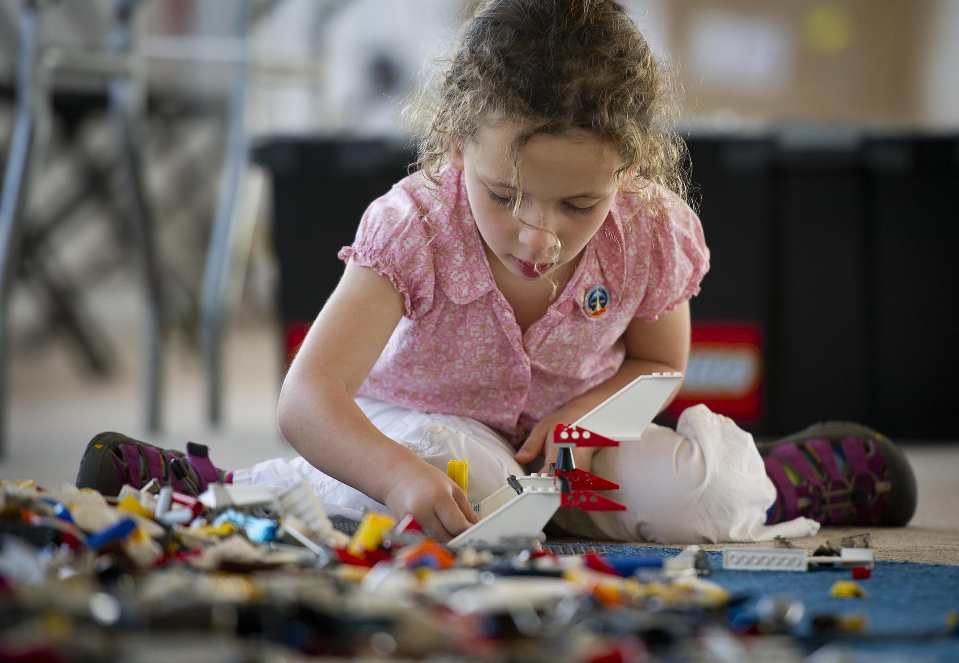 NASA Officials, LEGO Group management, students, teachers and parents create their vision of the future in space with LEGO bricks and elements as part of a “Build the Future” activity inside a tent that was set up on the launch viewing area at NASA's Kennedy Space Center in Cape Canaveral, Fla. on Monday, Nov. 1, 2010. NASA and The LEGO Group signed a Space Act Agreement to spark children's interest in science, technology, engineering and math (STEM). Photo Credit: (NASA/Bill Ingalls)