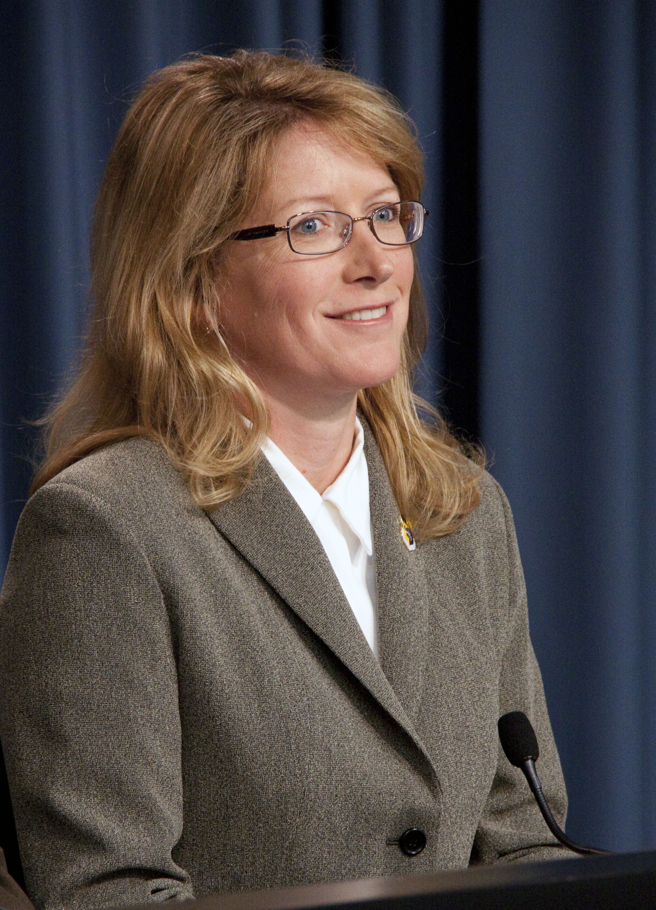 CAPE CANAVERAL, Fla. -- In the Press Site auditorium at NASA's Kennedy Space Center in Florida, Shuttle Weather Officer Kathy Winters speaks to media about the launch-day weather for space shuttle Endeavour's STS-134 mission. Endeavour and its crew will deliver the Express Logistics Carrier-3, Alpha Magnetic Spectrometer-2 (AMS), a high-pressure gas tank and additional spare parts for the Dextre robotic helper to the International Space Station. Launch is scheduled for April 29 at 3:47 p.m. EDT. This will be the final spaceflight for Endeavour. For more information visit, www.nasa.gov_mission_pages_shuttle_shuttlemissions_sts134_index.html. Photo credit: NASA_Jack Pfaller