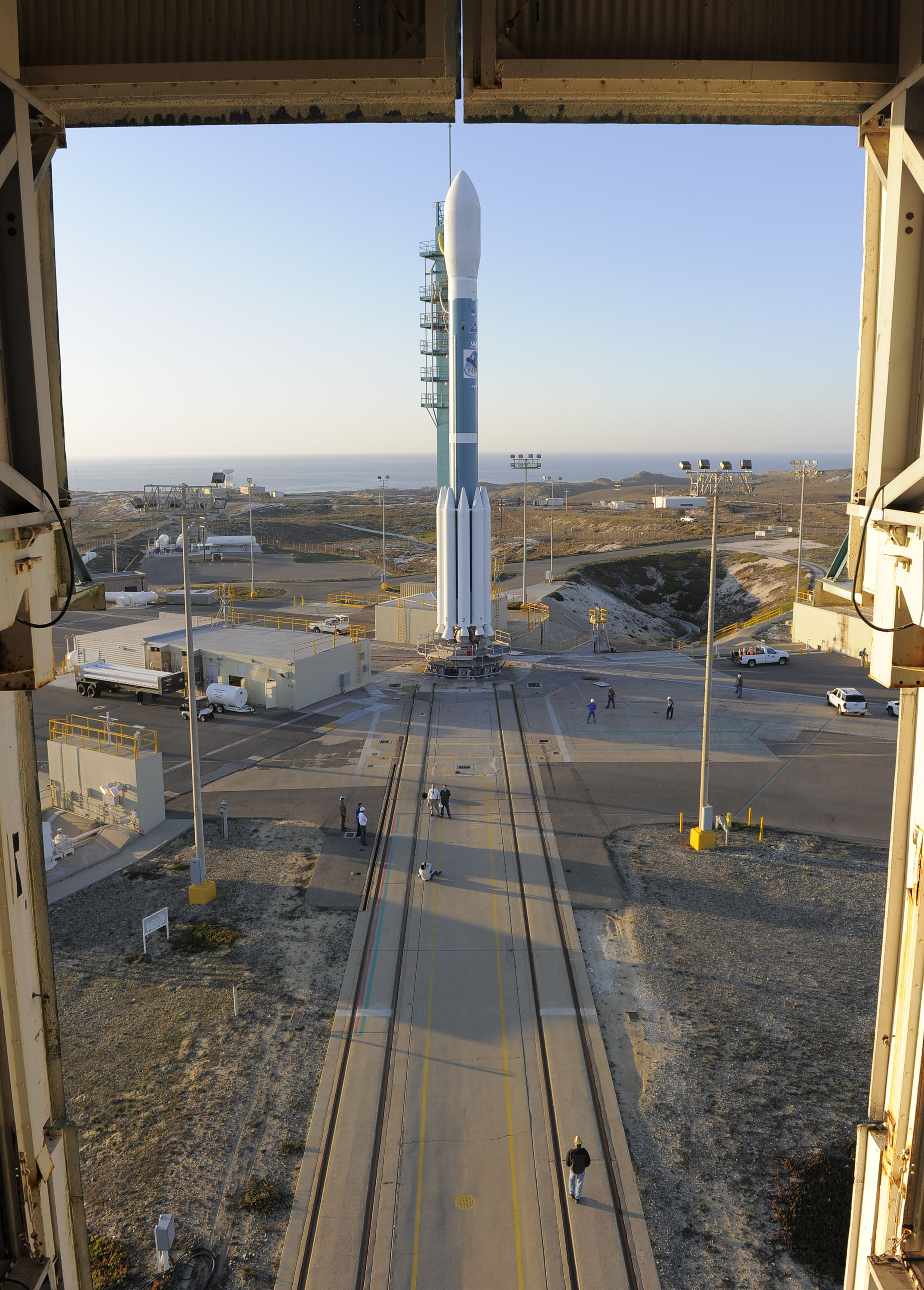 VANDENBERG AIR FORCE BASE, Calif. – At Vandenberg Air Force Base's Space Launch Complex-2 in California, a United Launch Alliance Delta II rocket with the National Polar-orbiting Operational Environmental Satellite System Preparatory Project (NPP) spacecraft aboard stands by itself on the launch pad following rollback of the mobile service tower. NPP represents a critical first step in building the next-generation of Earth-observing satellites. NPP will carry the first of the new sensors developed for this satellite fleet, now known as the Joint Polar Satellite System (JPSS) to be launched in 2016. NPP is the bridge between NASA's Earth Observing System (EOS) satellites and the forthcoming series of JPSS satellites. The mission will test key technologies and instruments for the JPSS missions. For more information, visit http:__www.nasa.gov_NPP. Photo credit: NASA_Kim Shiflett