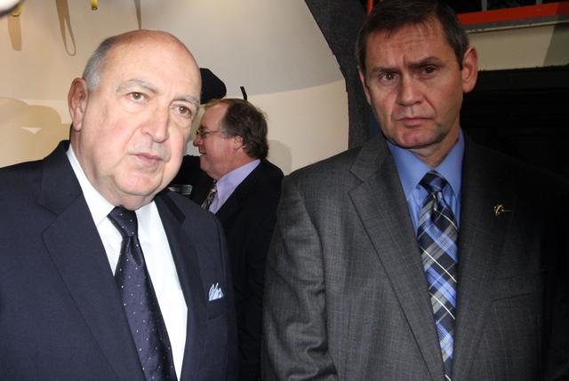 CAPE CANAVERAL, Fla. – In the Orbiter Processing Facility-3 (OPF-3) at NASA’s Kennedy Space Center in Florida, from left, Frank DiBello, president of Space Florida and John Elbon, vice president and general manager of Boeing's Space Exploration, stand before a full-scale mockup of The Boeing Company’s CST-100 spacecraft after the ceremony which announced the signing of an innovative agreement between NASA and Space Florida. NASA announced a partnership with Space Florida to occupy, use and modify Kennedy Space Center's Orbiter Processing Facility-3 (OPF-3), the Space Shuttle Main Engine Processing Facility and Processing Control Center. Space Florida has an agreement for use of the OPF-3 with the Boeing Company to manufacture and test the company's Crew Space Transportation (CST-100) spacecraft. The 15-year use permit deal is the latest step Kennedy is making as the center transitions from a historically government-only launch complex to a multi-user spaceport. For more information, visit http:__www.nasa.gov_exploration_commercial_index.html. Photo credit: NASA_Ken Thornsley