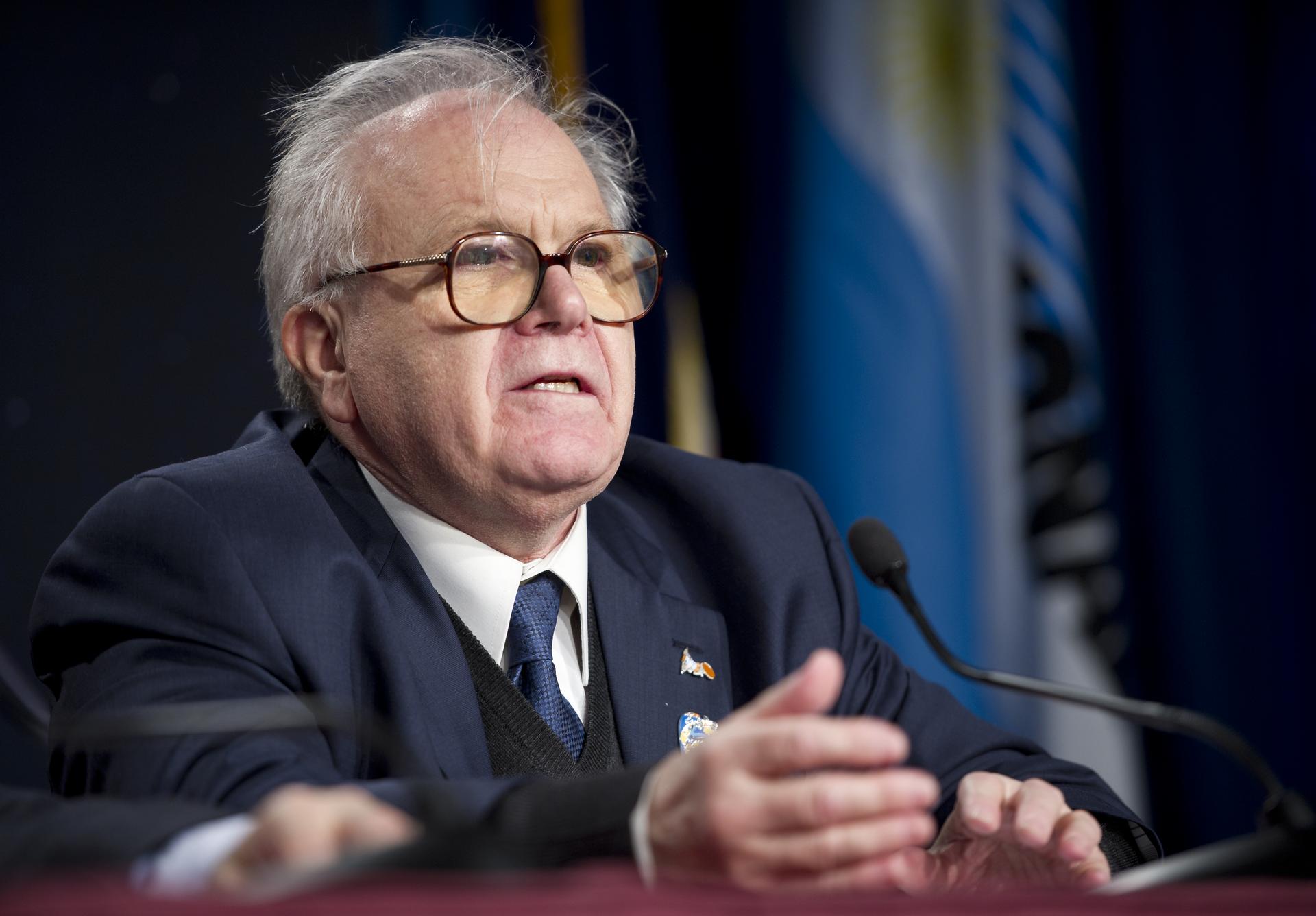 Conrado Varotto, CONAE Executive and Technical Director, Buenos Aires, talks during the Aquarius/SAC-D post-launch press conference on Friday, June 10, 2011 at the NASA Resident Office, Vandenberg Air Force Base, Calif. The joint U.S./Argentinian Aquarius/Satélite de Aplicaciones Científicas (SAC)-D mission, launched earlier on Friday June 10, will map the salinity at the ocean surface, information critical to improving our understanding of two major components of Earth's climate system: the water cycle and ocean circulation. Photo Credit: (NASA/Bill Ingalls)