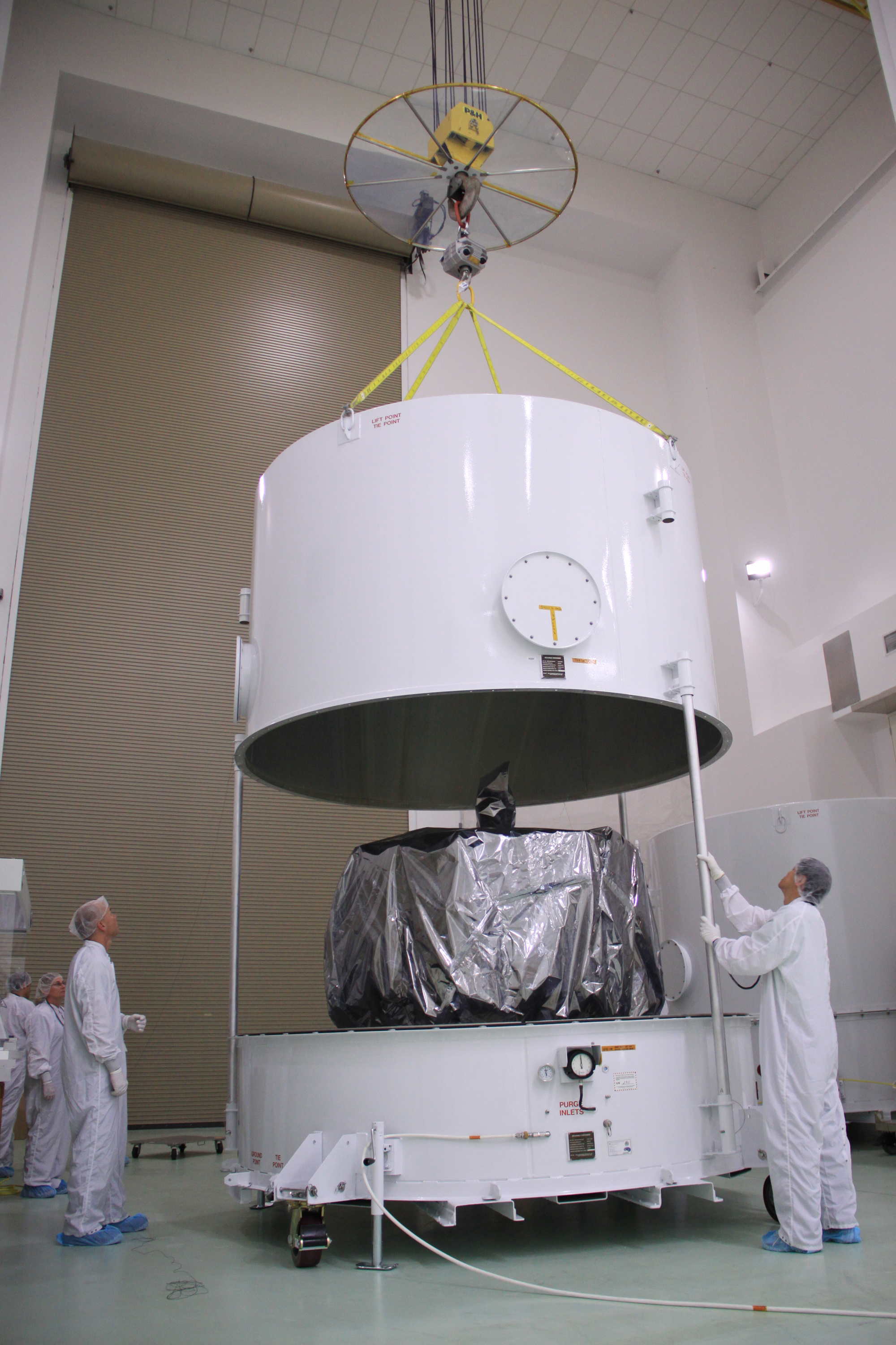 RBSP-A, Canister Removal, First Bag Removal, Solar Panels Unbagged and into Work Stand